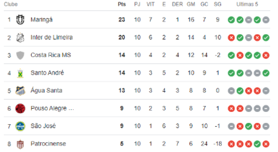 Até o fim de primeira fase, o Costa Rica ainda enfrenta o Pouso Alegre e a Inter de Limeira, fora de casa, e recebe Maringá e São José, na última rodada.
