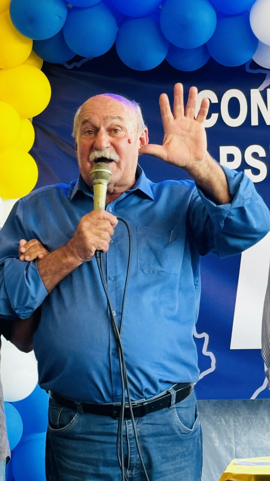 Em um evento marcado por discursos de paz e união e demonstrações de apoio, o prefeito Juvenal Consolaro (PSDB) oficializou sua pré-candidatura à reeleição durante a convenção realizada no sábado(27), no sindicato rural de Figueirão. Consolaro anunciou como pré candidato vice-prefeito o nome de Jorge Mortari, consolidando a aliança entre PSDB e PSB para as próximas eleições municipais.