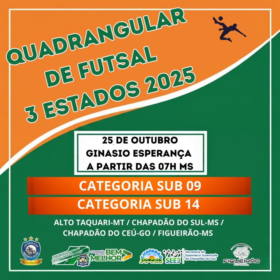 Chapadão do Sul sediará no dia 25 de outubro, no Ginásio Esperança, o Quadrangular de Futsal nas categorias Sub-9 e Sub-14.