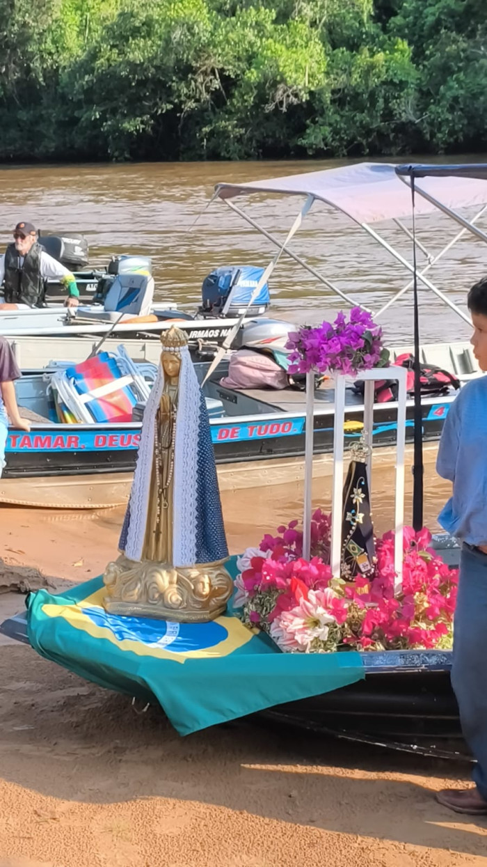 O evento religioso aconteceu no Rio Sucuriú, com saída do Porto Municipal, reunindo cerca de 20 embarcações decoradas que acompanharam o percurso em homenagem à padroeira do Brasil.