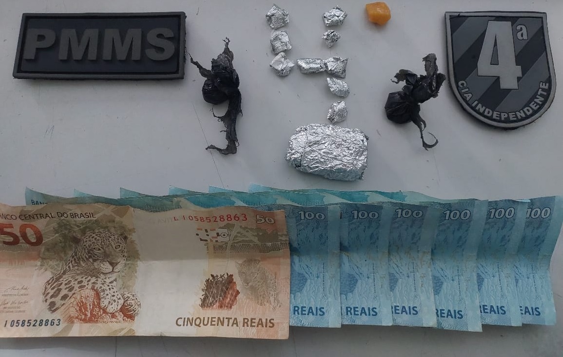 Durante a abordagem, foram encontradas 10 porções de crack, 2 de cocaína e 1 de maconha, totalizando 13 gramas de drogas.