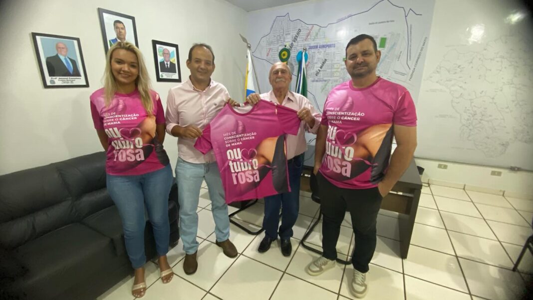 Na manhã desta segunda-feira, 20 de outubro de 2025, o Secretário Municipal de Saúde, Beugmar Ferreira da Silva, e a Diretora da Unidade Básica de Saúde Arindo Rodrigues da Silva, estiveram no gabinete do Prefeito Juvenal Consolaro, acompanhados do Vice-Prefeito Jorge Mortari, para realizar a entrega das lembranças da campanha Outubro Rosa.