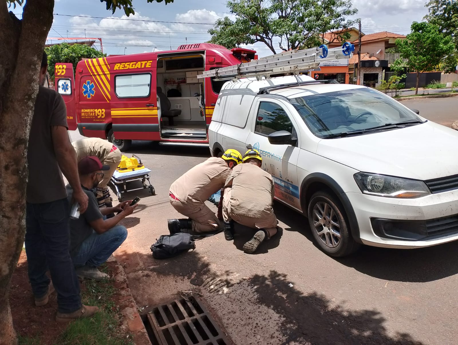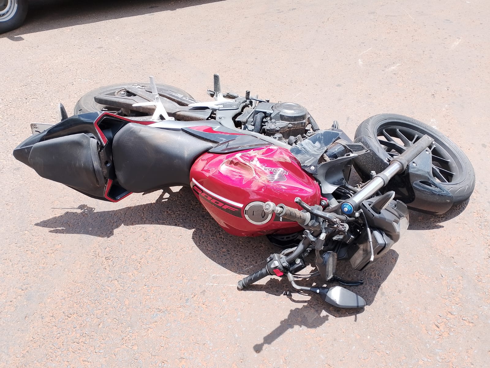 Os veículos trafegavam no mesmo sentido pela a rua Brasil, quando o motorista de uma Saveiro realizou uma conversão para entrar à direita. O condutor da motocicleta Honda 500cc se assustou ao perceber a manobra repentina e realizou uma frenagem brusca, perdendo o controle do veículo.
