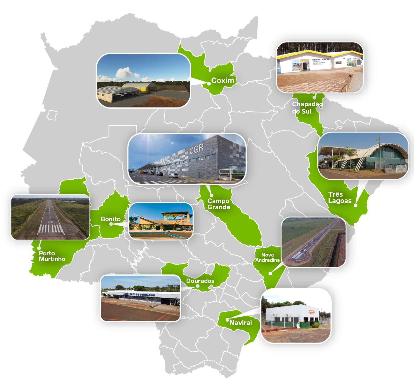 Os nove aeroportos regionais de Mato Grosso do Sul que devem ser leiloados são: Estância Santa Maria (em Campo Grande), Bonito, Três Lagoas, Chapadão do Sul, Dourados, Coxim, Porto Murtinho, Naviraí e Nova Andradina. Alguns deles, como o de Dourados, já recebem investimentos públicos federais e estaduais para obras de infraestrutura e retomada de voos comerciais.