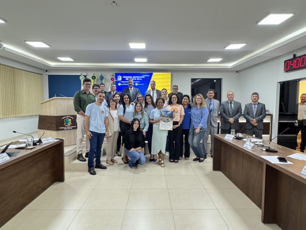 A Moção nº 14/2025, de autoria da vereadora Rosângela Marçal Paes, foi entregue à Sra. Mirian Pereira de Souza Maia, em reconhecimento à sua trajetória de dedicação e voluntariado em prol da comunidade, com destaque para sua atuação como presidente da Rede da Mulher de Costa Rica de Combate ao Câncer.