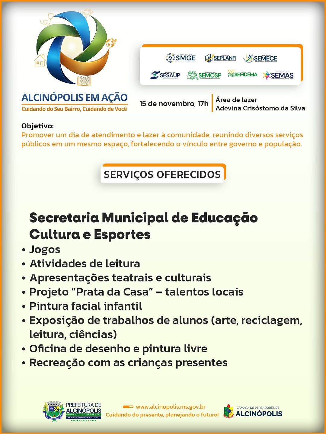 Durante o evento, serão disponibilizados diversos serviços oferecidos pelas secretarias municipais, além de atividades de lazer e recreação para toda a comunidade.