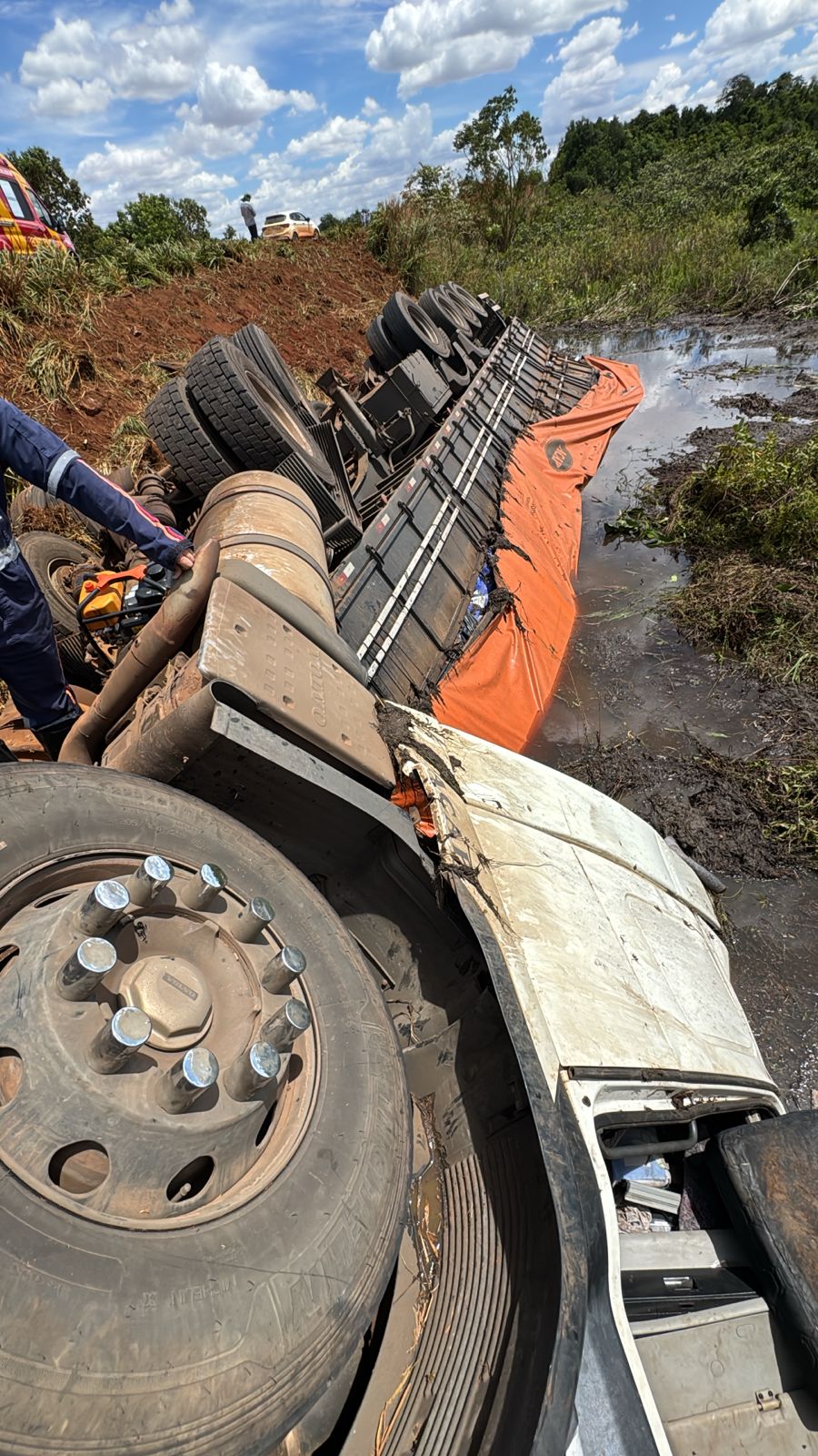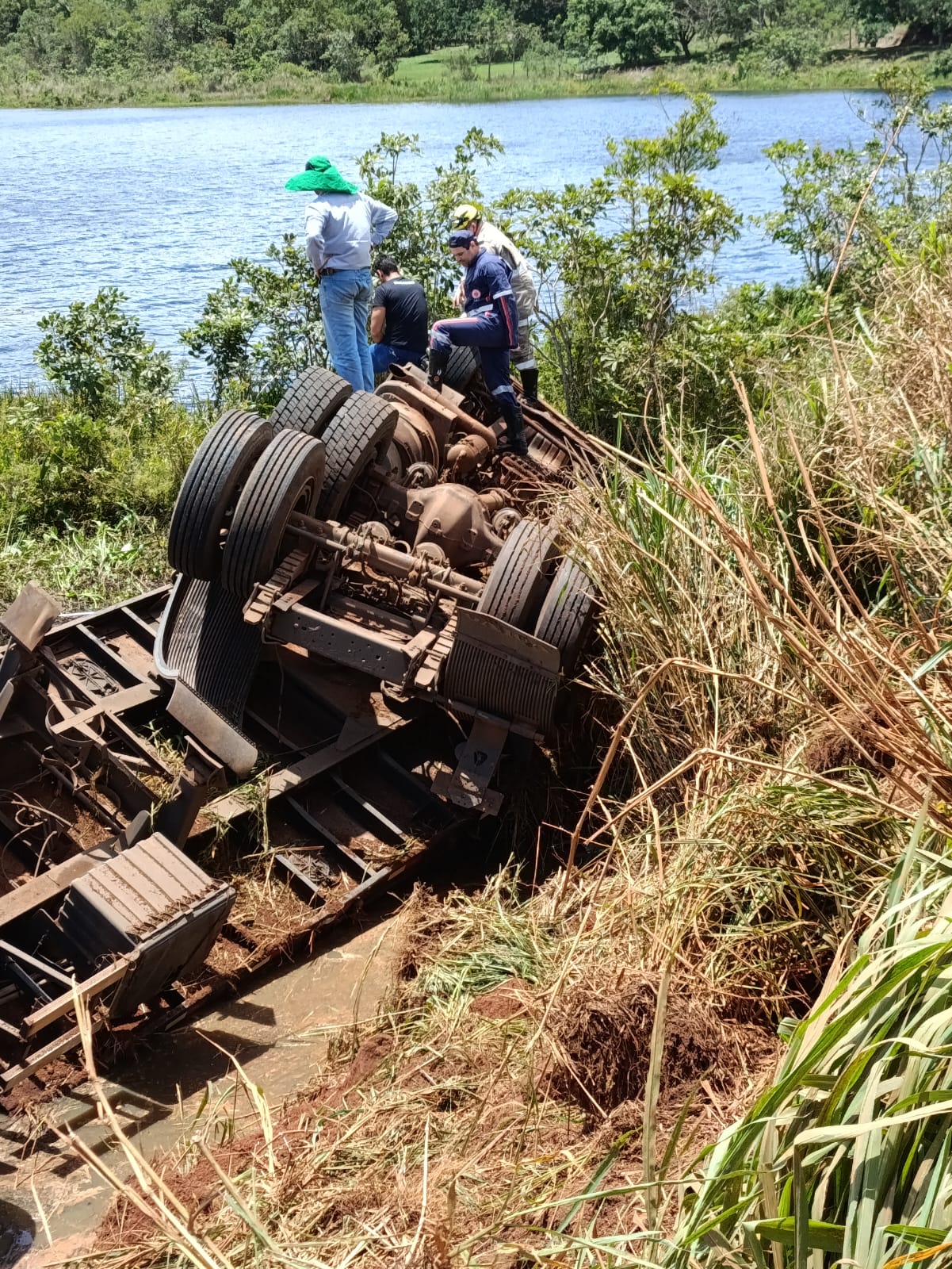 Vídeos e fotos estão circulando nas redes sociais mostrando o tombamento de uma carreta, no Lago das Garças, na chegada de Chapadão do Céu.