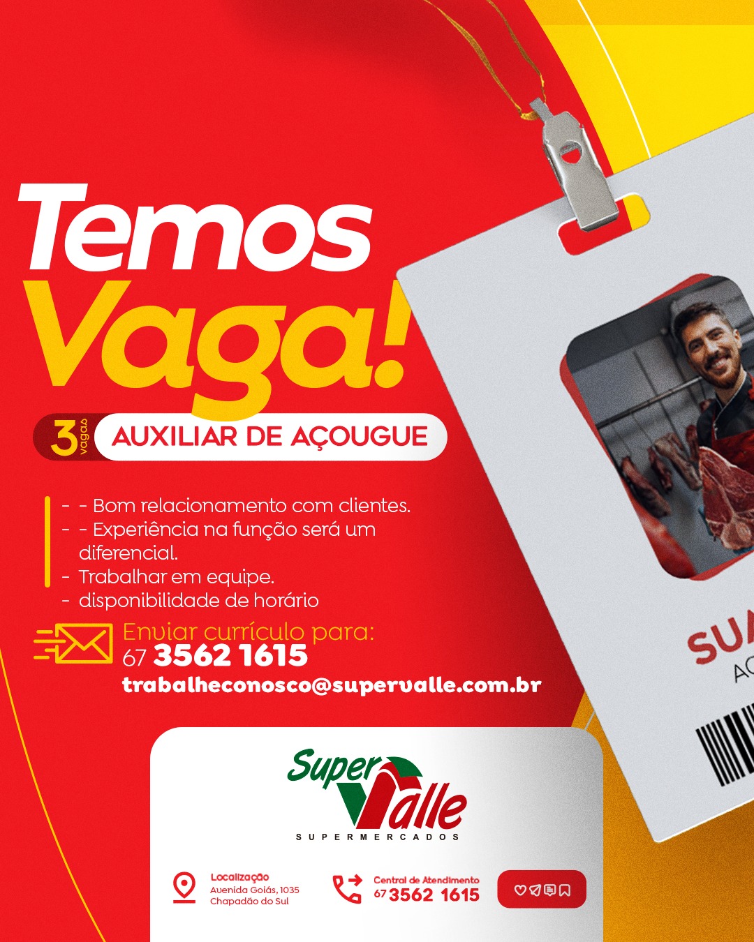 InícioclassificadoOportunidade de Emprego - contratação imediata Oportunidade de Emprego – contratação imediata 10 de novembro de 2025 22 FacebookTwitterPinterestWhatsApp Adejair O Super Valle esta com duas vagas de emprego em aberto, para contratação imediata. Vagas para:Auxiliar de Açougue e Conferente Interessados procurar o super Valle na avenida Goias Artigo anteriorProfessor Jorge Luiz é campeão na Taça Brasil Master de Atletismo em São PauloPróximo artigoEx-Presidente da Câmara de Vereadores de Cassilândia morre logo após o casamento do filho Prefeitura de Chapadão do Sul divulga as datas de matrículas e rematrículas para ano letivo de 2026 10 de novembro de 2025 PROCON de Chapadão do Sul orienta consumidores sobre o Feirão Serasa Limpa Nome 2025 10 de novembro de 2025 Soja inicia nova semana em alta na Bolsa de Chicago nesta 2ª, com contrato maio acima dos US$ 11,40 10 de novembro de 2025 Casa do Trabalhador de Costa Rica inicia semana com 46 oportunidades de Emprego 10 de novembro de 2025 Prefeitura de Chapadão do Sul divulga as datas de matrículas e rematrículas para ano letivo de 2026 PROCON de Chapadão do Sul orienta consumidores sobre o Feirão Serasa Limpa Nome 2025 Soja inicia nova semana em alta na Bolsa de Chicago nesta 2ª, com contrato maio acima dos US$ 11,40 Casa do Trabalhador de Costa Rica inicia semana com 46 oportunidades de Emprego Sepultamento de Naldo será as14hs30 Milho: Preço segue firme e retoma patamar de junho Soja inicia nova semana em alta na Bolsa de Chicago nesta 2ª, com contrato maio acima dos US$ 11,40 Confira as ofertas deste dia 10 no Super Valle Pecuarista e peões matam onças envenenadas e vão pagar R$ 18,2 mil pelo crime Ex-Presidente da Câmara de Vereadores de Cassilândia morre logo após o casamento do filho Professor Jorge Luiz é campeão na Taça Brasil Master de Atletismo em São Paulo Equipe sub-15 de vôlei da SEMEJUL conquista 4º lugar no estadual em campo grande