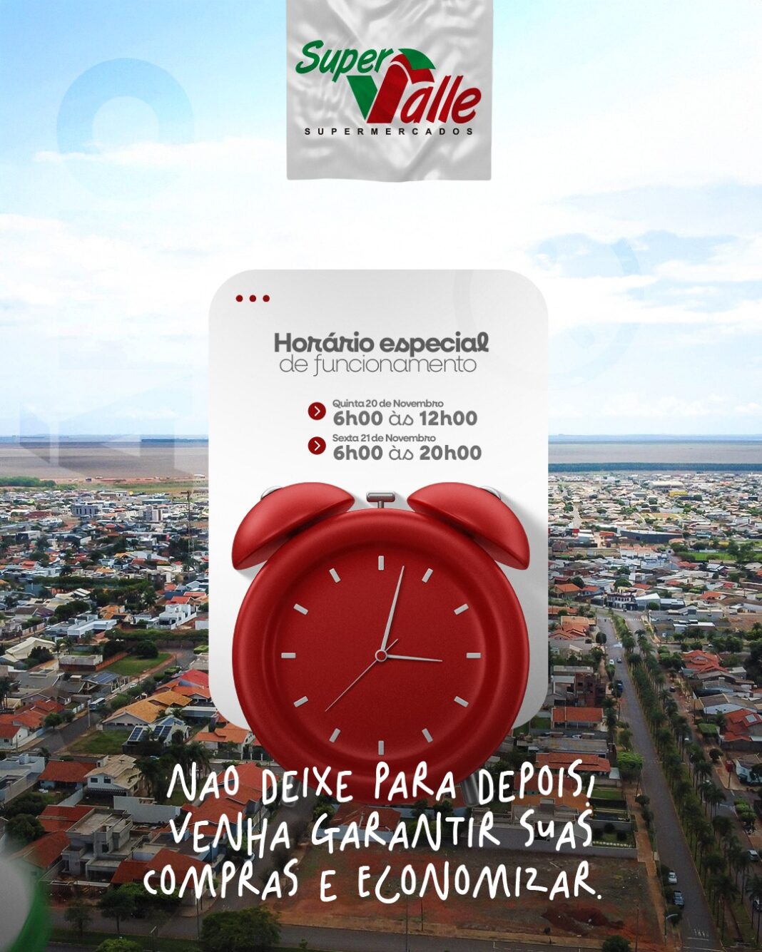 🛒 Na sexta-feira, estaremos atendendo em horário normal, das 06h às 20h, para você garantir todas as suas compras com tranquilidade.