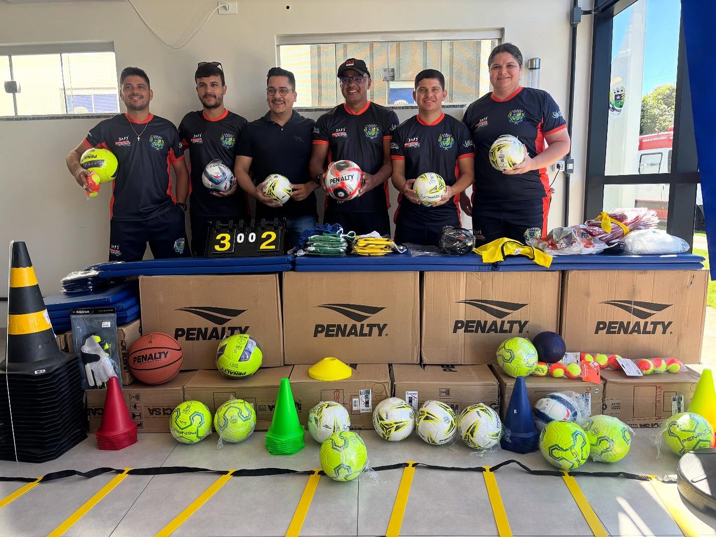 Prefeito Weliton Guimarães, o vice-prefeito Waldemar e o secretário de Educação e Esporte presidente do Legislativo vereador Passarinho, participaram realizaram nesta quarta , da entrega de um novo lote de materiais esportivos destinados às atividades da rede esportiva municipal.