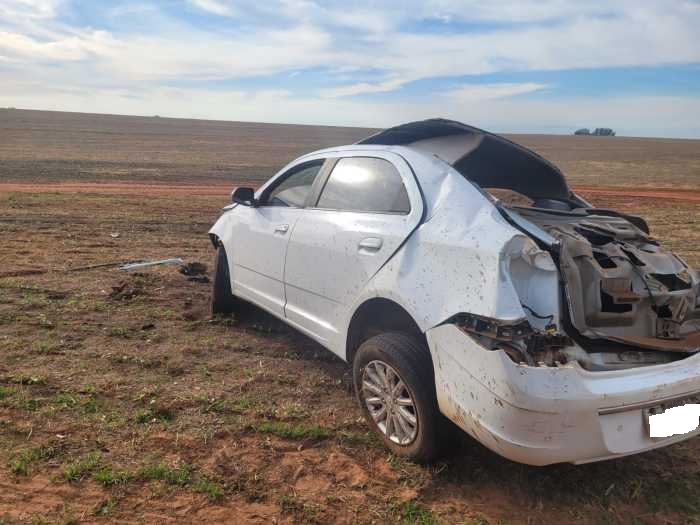 O veículo ficou completamente destruído em uma área de lavoura às margens da rodovia.