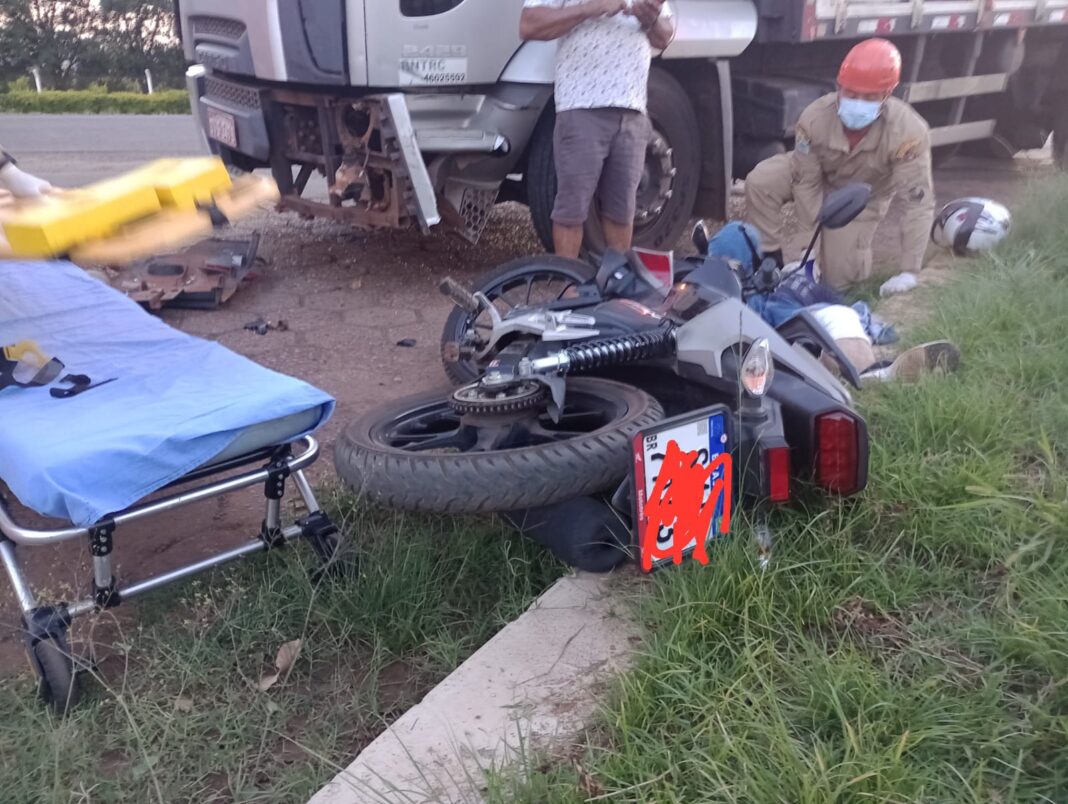 No final da tarde do último sábado (29), um motociclista identificado como B.A.S.S., 36 anos, ficou ferido após uma colisão com um caminhão na entrada do Posto Novo MT, em Chapadão do Sul.
