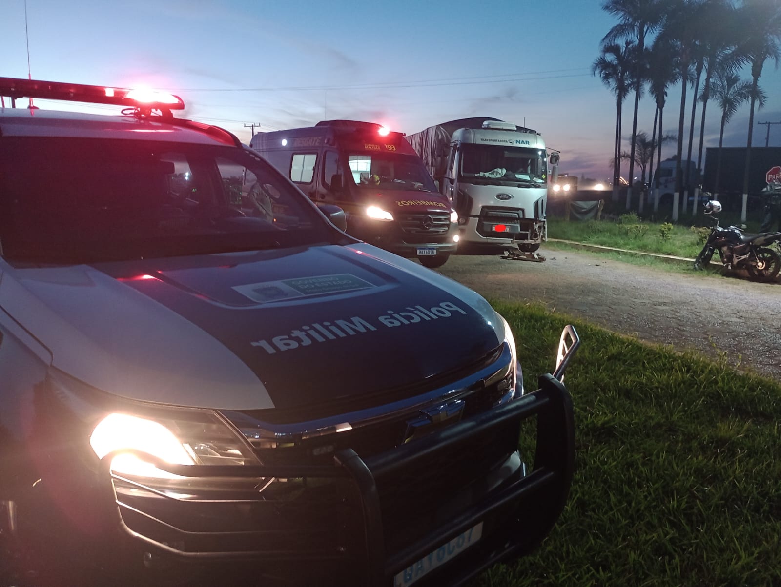 Segundo informações repassadas pelo Corpo de Bombeiros, por volta das 17h40 (local), eles foram acionados para atender um acidente envolvendo uma motocicleta e um caminhão na entrada do posto de combustível.