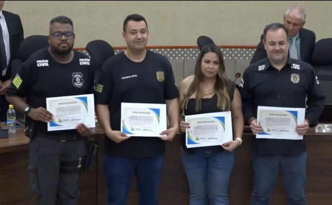 Na noite desta terça-feira, policiais civis e servidores administrativos lotados na Delegacia de Polícia de Chapadão do Céu-GO foram homenageados com Moção de Aplausos pela Câmara de Vereadores.