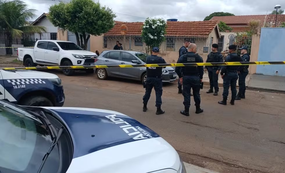 Equipes da Polícia Militar e da Polícia Civil permanecem no local, onde o corpo da vítima ainda está à espera da perícia.