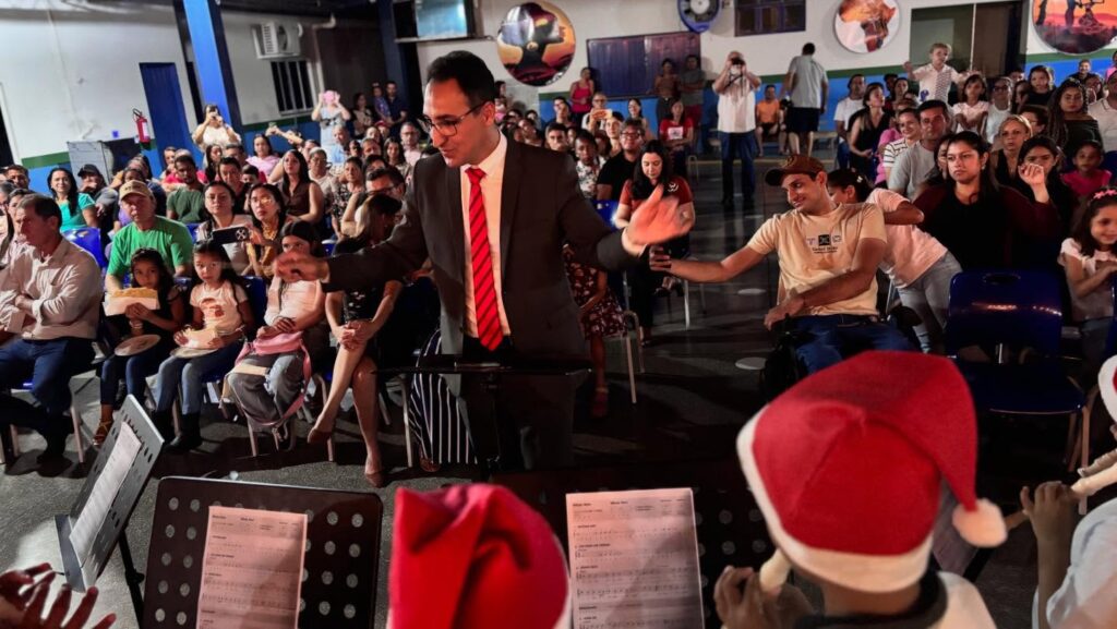 A EMAC recebeu, na noite de ontem, uma emocionante Cantata de Natal que encantou o público e reforçou o verdadeiro espírito desta época tão especial. O evento contou com belas apresentações da Banda Musical Iulle Martins Rezende e do Coral UCDB, de Campo Grande, que elevaram ainda mais o brilho da celebração com interpretações envolventes.