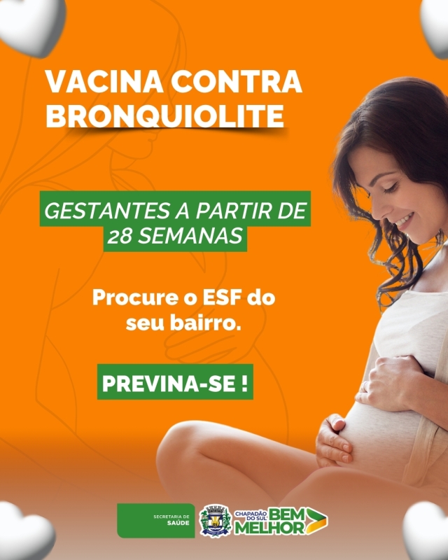 EM CHAPADÃO DO SUL, A SECRETARIA DE SAÚDE INFORMOU QUE A VACINA ESTÁ DISPONÍVEL NOS POSTOS DE SAÚDE. AS GESTANTES DEVEM PROCURAR O ESF DO SEU BAIRRO PARA SE IMUNIZAR.