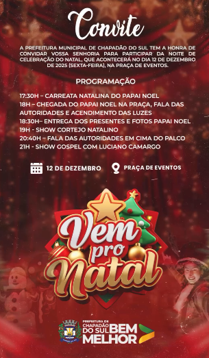 Serão entregues presentes para as crianças, fotos distribuídas gratuitamente com o Papai Noel e, para fechar a noite em grande estilo, o aguardado show gospel do cantor Luciano Camargo.