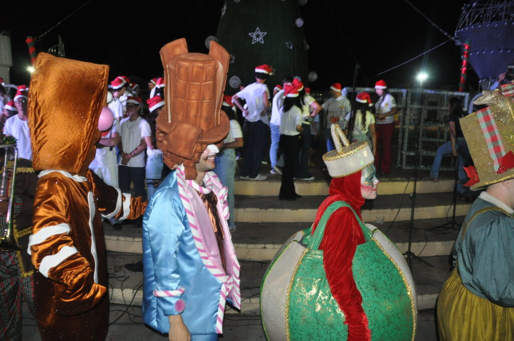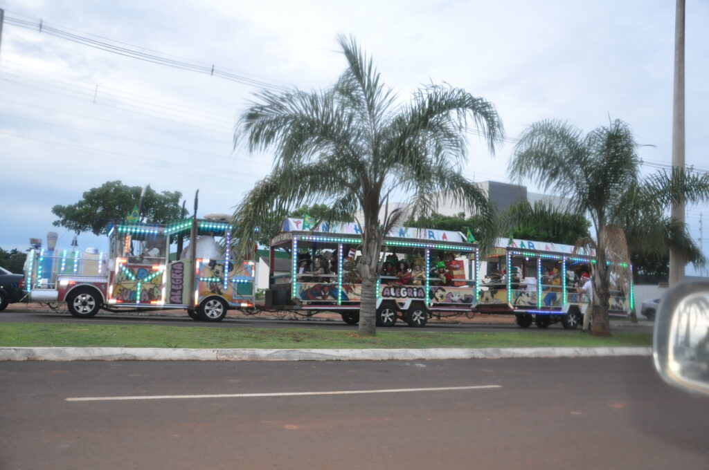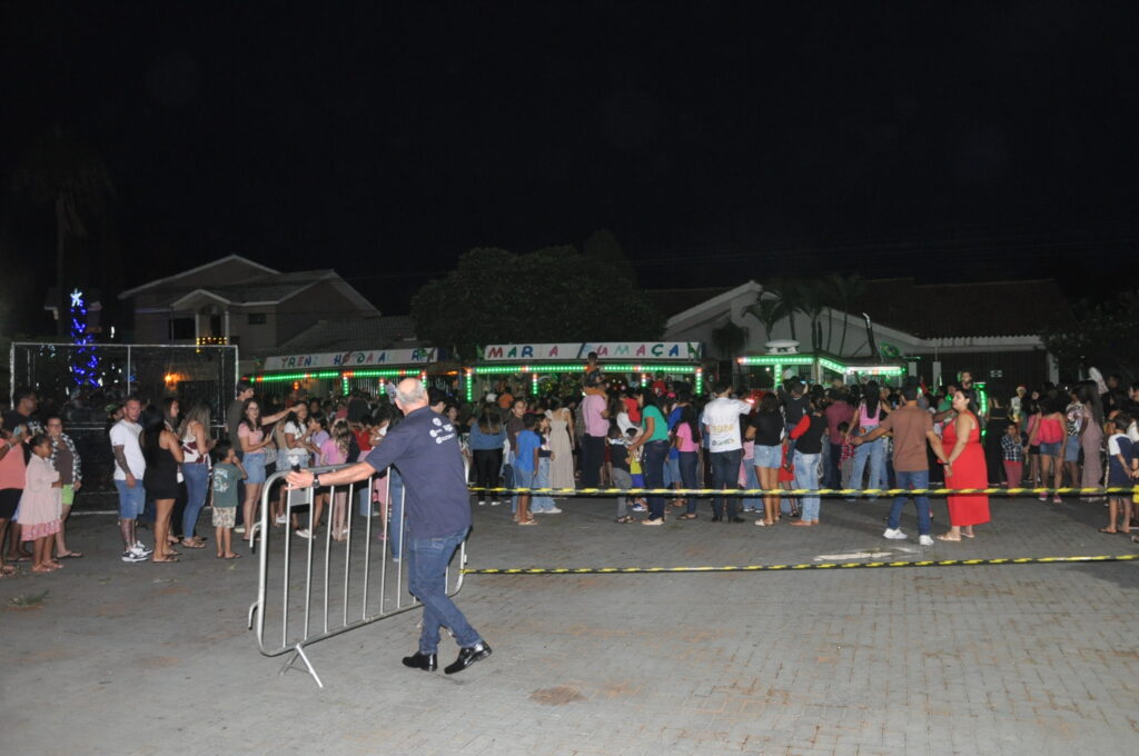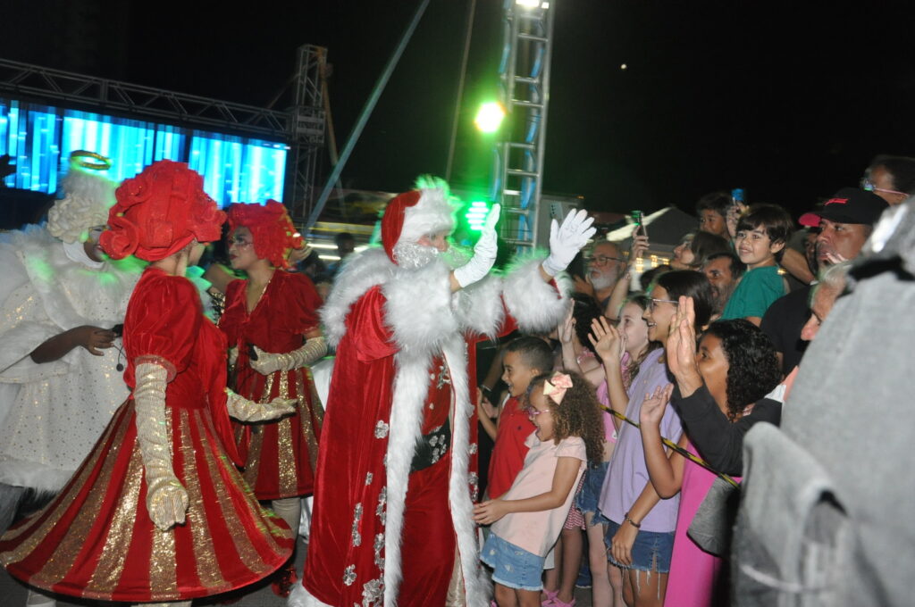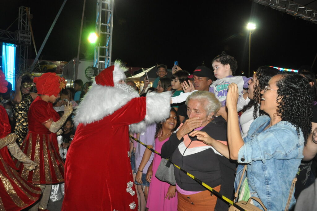 Na noite desta sexta-feira (12), a Praça de Eventos de Chapadão do Sul foi tomada por alegria, emoção e encantamento com a chegada do Papai Noel e da Mamãe Noel. O casal foi recepcionado pelo público em um animado trenzinho, acompanhado pela apresentação especial da Trupe do Reino, que levou diversão e o verdadeiro espírito natalino a crianças e adultos.