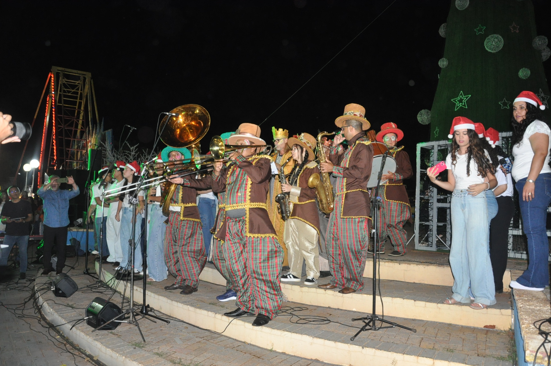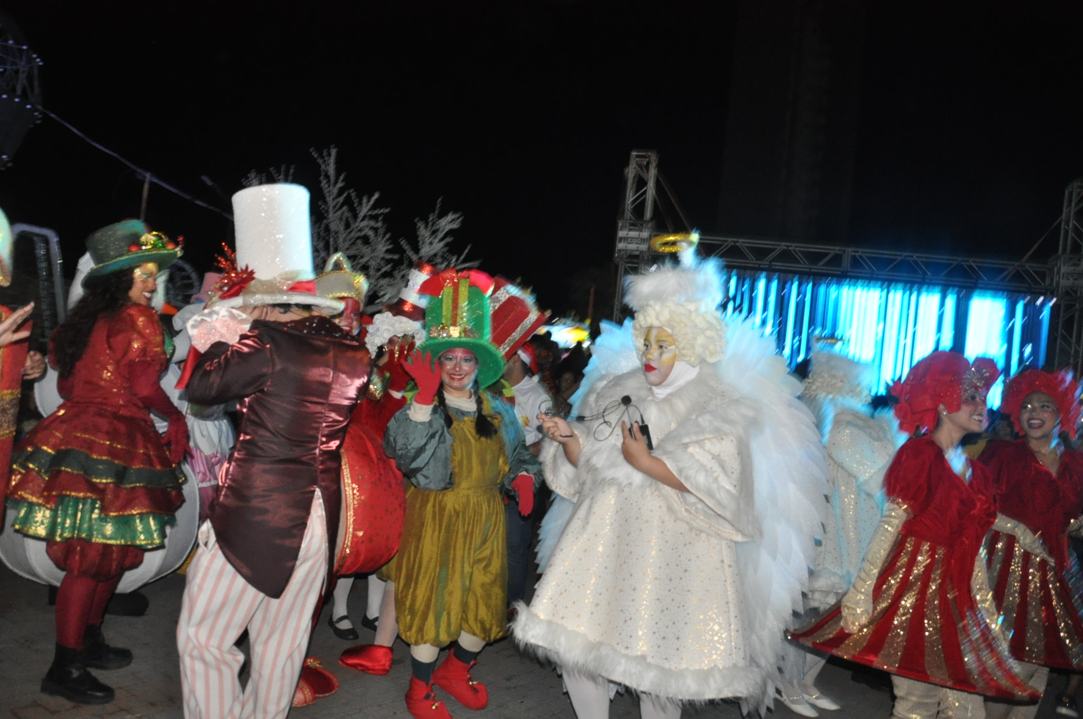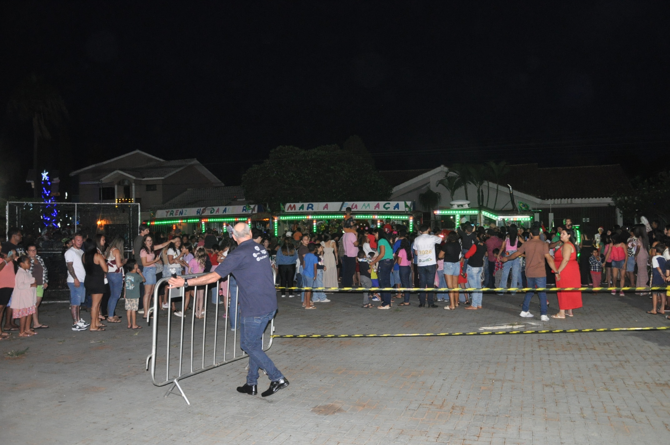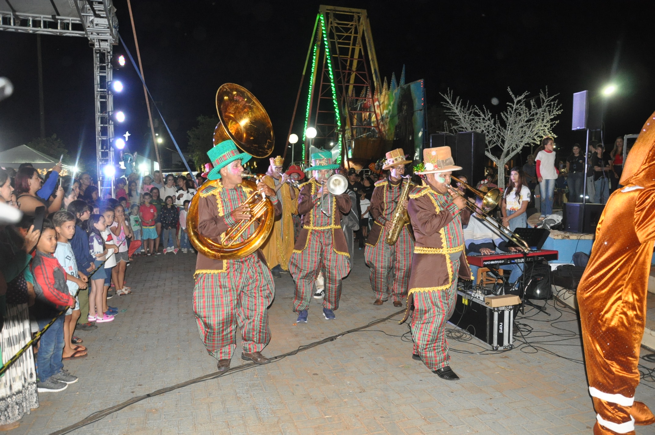 Na noite desta sexta-feira (12), a Praça de Eventos de Chapadão do Sul foi tomada por alegria, emoção e encantamento com a chegada do Papai Noel e da Mamãe Noel. O casal foi recepcionado pelo público em um animado trenzinho, acompanhado pela apresentação especial da Trupe do Reino, que levou diversão e o verdadeiro espírito natalino a crianças e adultos.