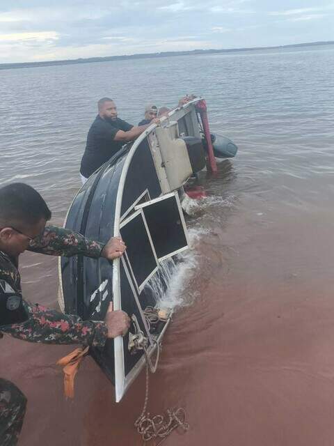 A lancha foi localizada e retirada do rio ainda na tarde de domingo, sendo devolvida aos proprietários.