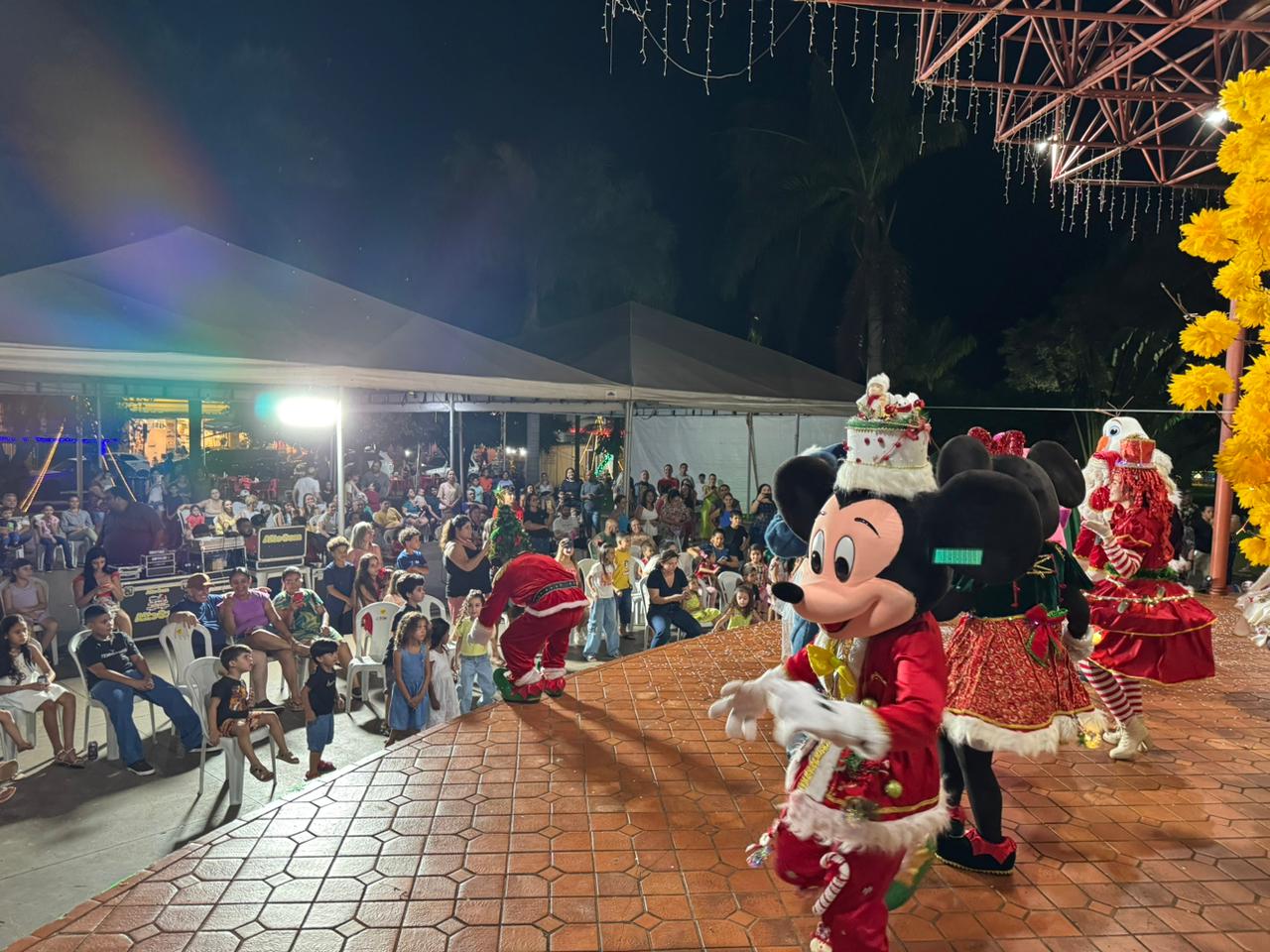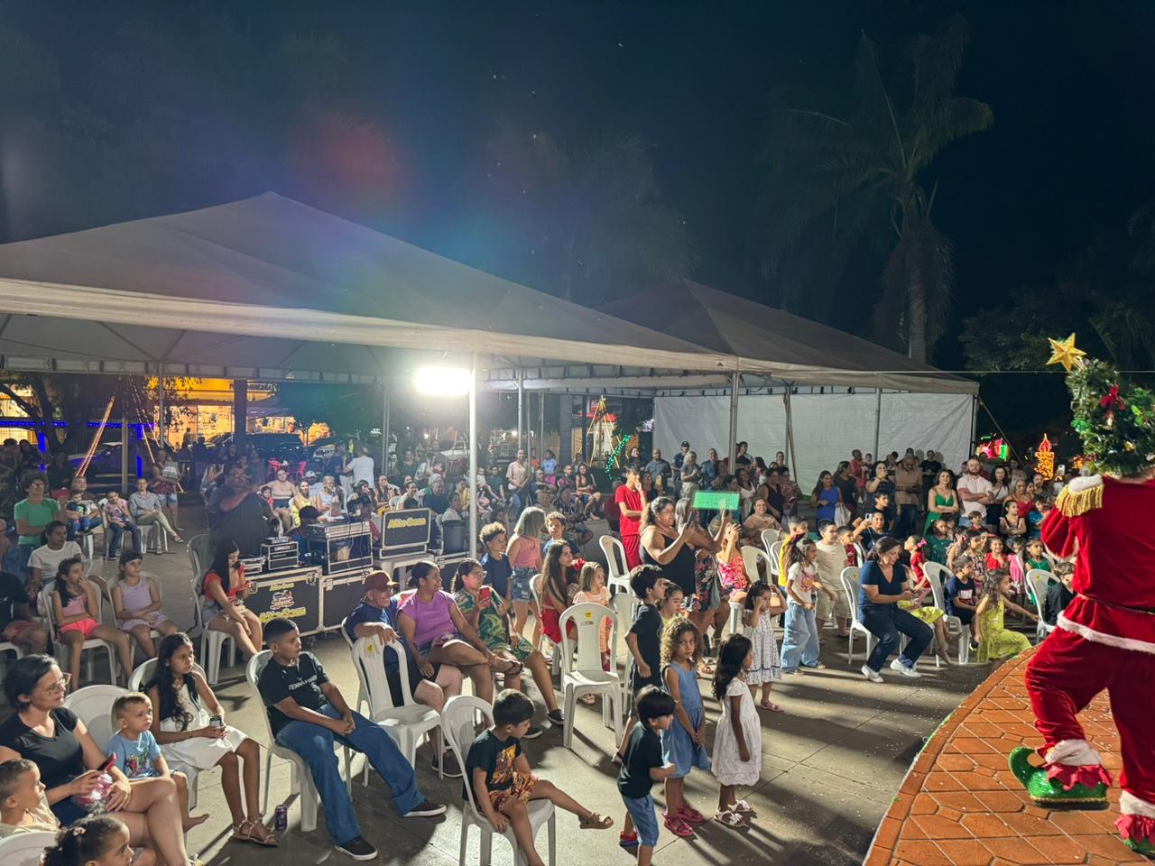 O evento, realizado na Concha Acústica da Praça São José, reuniu centenas de famílias e proporcionou momentos de alegria, emoção e encantamento para crianças e adultos. O grande destaque da noite foi a chegada do Papai Noel, que foi recebido com entusiasmo pelo público, em meio a apresentações artísticas e personagens natalinos.