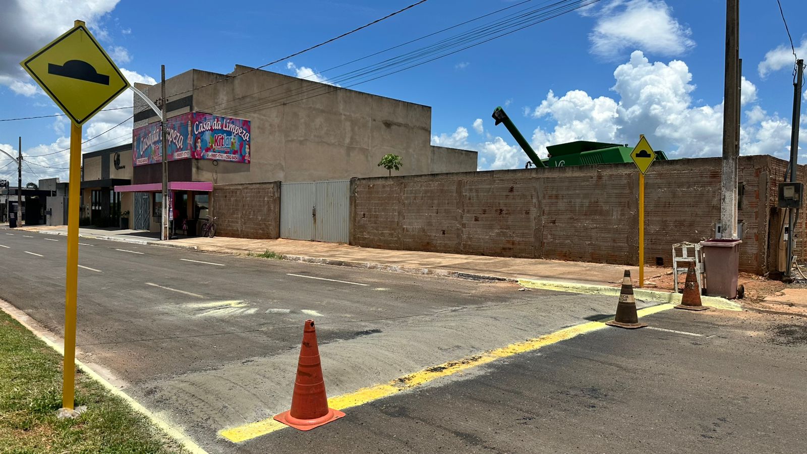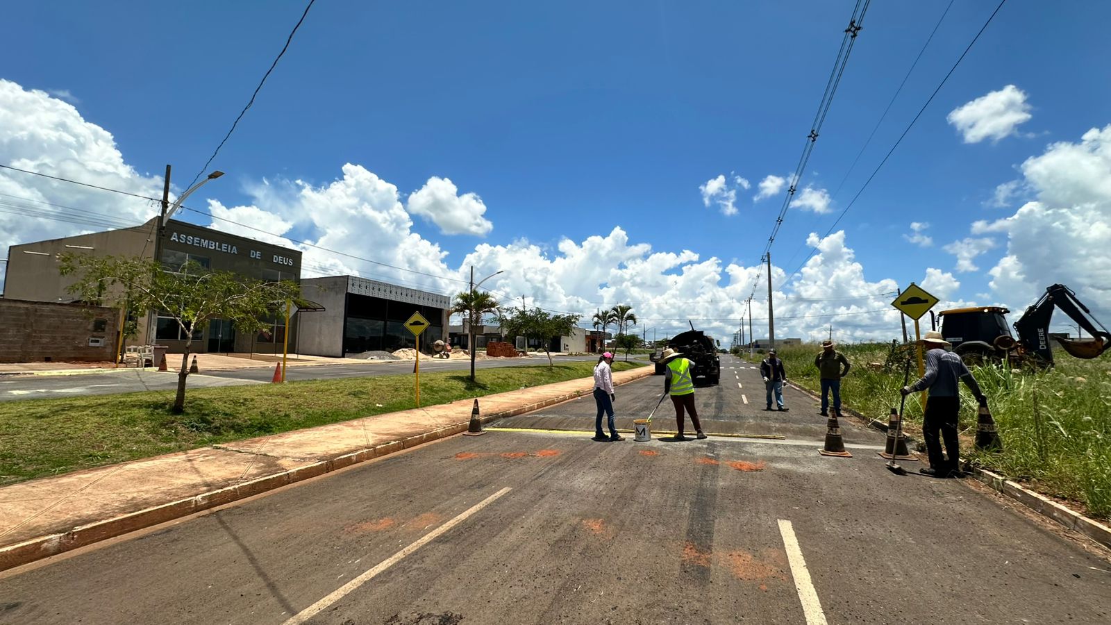 No momento, as equipes estão atuando diretamente na via, realizando a pintura dos quebra-molas e a instalação das placas de sinalização, garantindo que a nova estrutura esteja devidamente identificada e dentro das normas de trânsito.