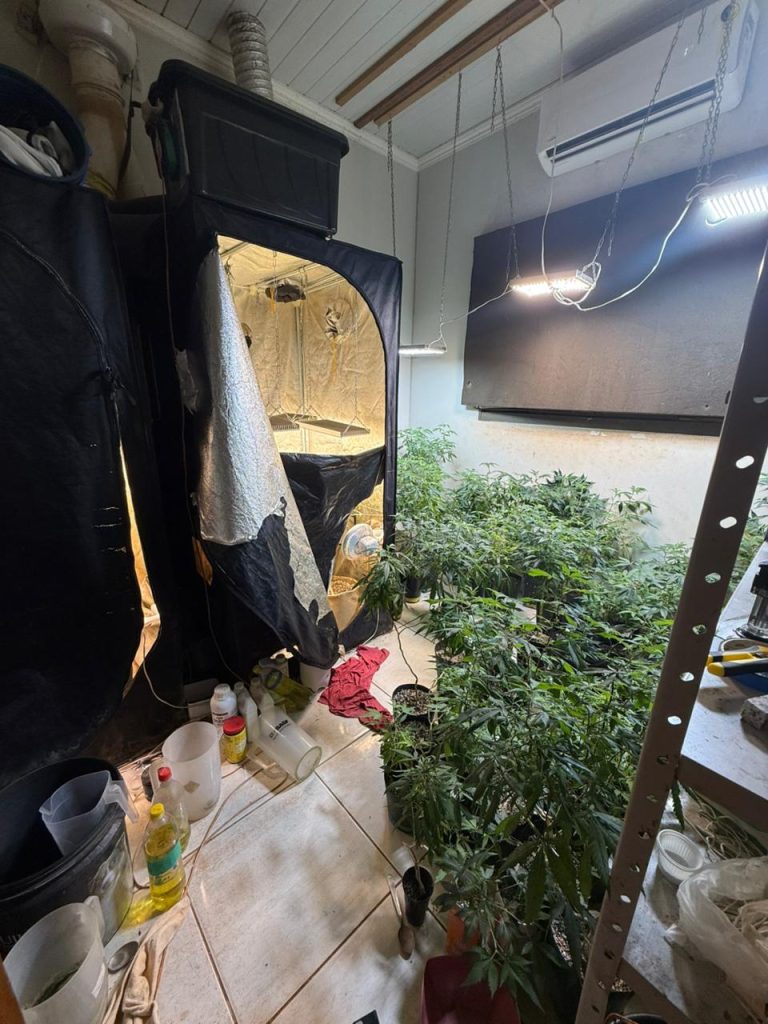 Durante a diligência, os policiais encontraram, em dois cômodos da residência, um laboratório completo para cultivo de cannabis sativa. Foram contabilizados ao menos 121 pés de maconha, distribuídos em diferentes ambientes e em vários estágios de crescimento.