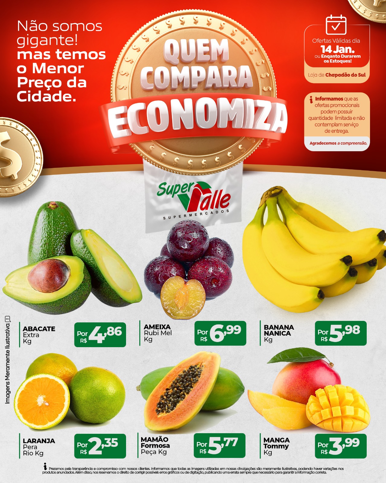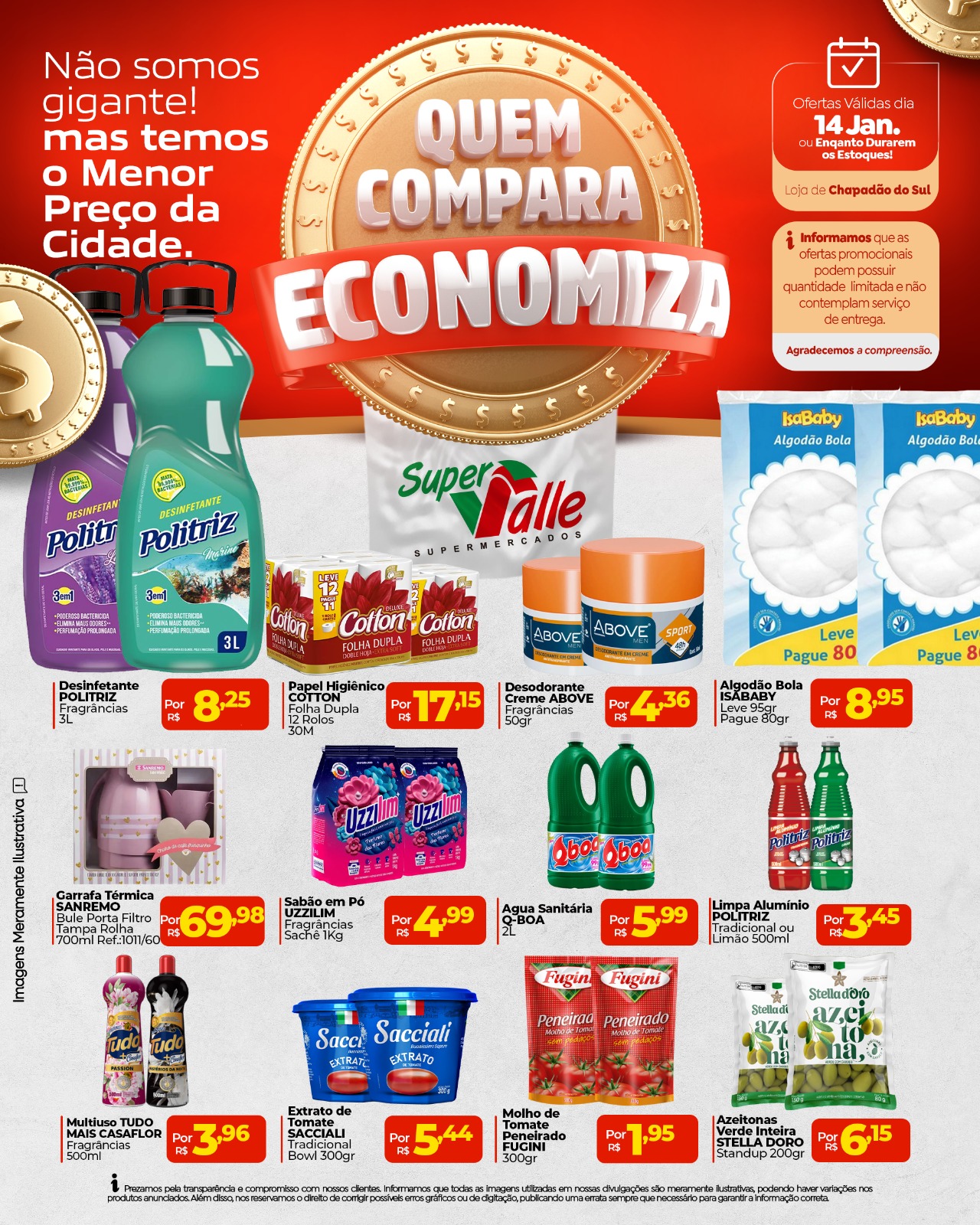 InícioChapadão do SulSuper Valle trás hoje os melhores preços - Confira Super Valle trás hoje os melhores preços – Confira 14 de janeiro de 2026 13 FacebookTwitterPinterestWhatsApp Adejair Aqui em Chapadão do Sul, quem pesquisa encontra os melhores preços pra economizar de verdade! 🛒💰 Compare, escolha e leve mais pagando menos! 🗓️ Ofertas válidas somente hoje, dia 14 de janeiro! Artigo anteriorSoja recua com foco em leilões e dados de ofertaPróximo artigoCultura de Chapadão do Sul inicia 2026 fortalecendo artistas locais com reunião de credenciamento e investimento histórico Nesta quarta-feira tem Rodízio de Pizza no Barzinho Oriental 14 de janeiro de 2026 SIM garante qualidade e segurança dos alimentos de origem animal em Cassilândia 14 de janeiro de 2026 Cultura de Chapadão do Sul inicia 2026 fortalecendo artistas locais com reunião de credenciamento e investimento histórico 14 de janeiro de 2026 Soja recua com foco em leilões e dados de oferta 14 de janeiro de 2026 Nesta quarta-feira tem Rodízio de Pizza no Barzinho Oriental SIM garante qualidade e segurança dos alimentos de origem animal em Cassilândia Cultura de Chapadão do Sul inicia 2026 fortalecendo artistas locais com reunião de credenciamento e investimento histórico Soja recua com foco em leilões e dados de oferta Área de sorgo cresce 7.700% em MS e chega a 400 mil hectares na safrinha Ferrugem asiática já atinge 47 lavouras de soja em 17 municípios. Horóscopo do Dia – O despertar dos astros Corpo é encontrado às margens da MS-306 é de um bombeiro de MG E agora Lula? Como fica o carro forte da economia Brasileira Vídeo: Obras do Centro de Diagnóstico por Imagem de Chapadão do Sul devem iniciar em breve Goiás aposta no pequi sem espinho e transforma fruto do Cerrado em lavoura comercial Secretaria de Esportes de Chapadão do Sul inicia a semana com limpeza e manutenção no Espaço Sibipiruna