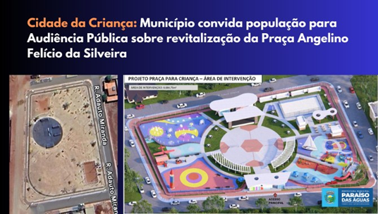 De acordo com o prefeito, o encontro será um momento importante para o futuro do município, pois o espaço deverá receber o projeto denominado “Cidade da Criança”, pensado especialmente para atender as famílias paraisenses. A proposta inclui brinquedos, área de lazer, pista de caminhada, espaço para eventos, entre outras melhorias.
