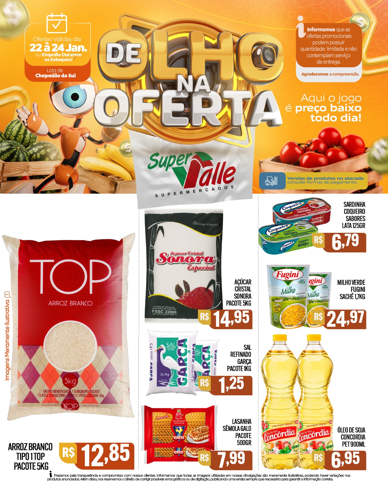 InícioChapadão do SulDe olho na oferta do Super Valle! De olho na oferta do Super Valle! 22 de janeiro de 2026 28 FacebookTwitterPinterestWhatsApp Adejair Na loja de Chapadão do Sul, o jogo é claro: quem pisca perde! 👀💥 É preço baixo todo dia, ofertas que viram assunto da casa e economia digna de líder! 🏆🛒 📅 Ofertas válidas de 22 a 24 de janeiro ou enquanto durarem os estoques Artigo anteriorMãe pede ajuda do prefeito de Chapadão do Céu para crise financeira da APAEPróximo artigoChapadão do Sul qualifica setor de compras públicas e fortalece ambiente de negócios com apoio do SEBRAE/MS Era cliente do Will Bank? Saiba como ficam cartões, saldos em conta e dívidas 22 de janeiro de 2026 Atenção: Sanesul informa interrupção temporária no fornecimento de água no centro e bairros de Chapadão do Sul 22 de janeiro de 2026 Plano do governo prevê retirar do mercado agrotóxicos ‘ultraperigosos’ 22 de janeiro de 2026 Projeto Sucuriú fortalece articulação interinstitucional no enfrentamento às violências 22 de janeiro de 2026 Era cliente do Will Bank? Saiba como ficam cartões, saldos em conta e dívidas Atenção: Sanesul informa interrupção temporária no fornecimento de água no centro e bairros de Chapadão do Sul Plano do governo prevê retirar do mercado agrotóxicos ‘ultraperigosos’ Projeto Sucuriú fortalece articulação interinstitucional no enfrentamento às violências Veado é resgatado dentro de lava jato em Costa Rica e devolvido à natureza Conselho Federal de Enfermagem autoriza prescrição de antibióticos por enfermeiros Acessibilidade garantida: Prefeito Weliton entrega mais uma ponte na zona rural Confira as promoções desta quinta-feira no Barzinho Oriental Chapadão do Sul qualifica setor de compras públicas e fortalece ambiente de negócios com apoio do SEBRAE/MS Mãe pede ajuda do prefeito de Chapadão do Céu para crise financeira da APAE Avanço de doenças na soja pode impactar resultados da safra Estado fica entre cinco maiores exportadores de soja e milho em 2025