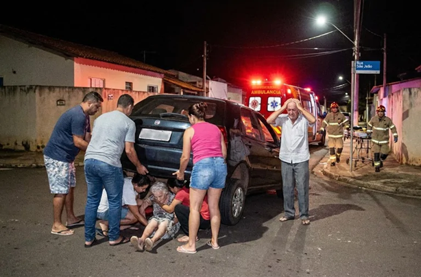 O automóvel ficou parcialmente sobre ela, sendo necessária a intervenção imediata de vizinhos para a retirada do veículo de cima da idosa.