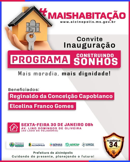 A Prefeitura de Alcinópolis, por meio do programa Construindo Sonhos, fará a entrega de duas novas moradias, beneficiando duas famílias do município e reforçando o compromisso da gestão com a habitação e a qualidade de vida da população.