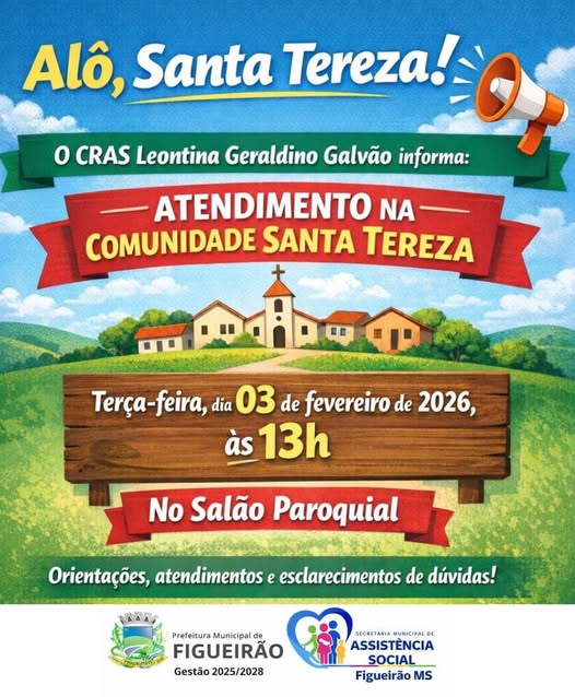 A Prefeitura Municipal de Figueirão – MS, por meio da Secretaria Municipal de Assistência Social e do CRAS Leontina Geraldino Galvão, realizará um atendimento presencial na Comunidade Quilombola de Santa Tereza, aproximando os serviços socioassistenciais das famílias da região.