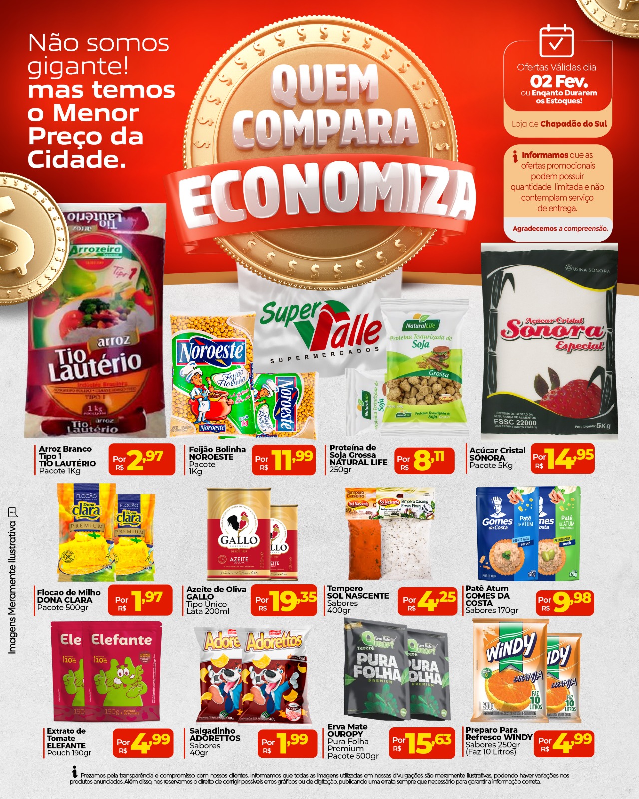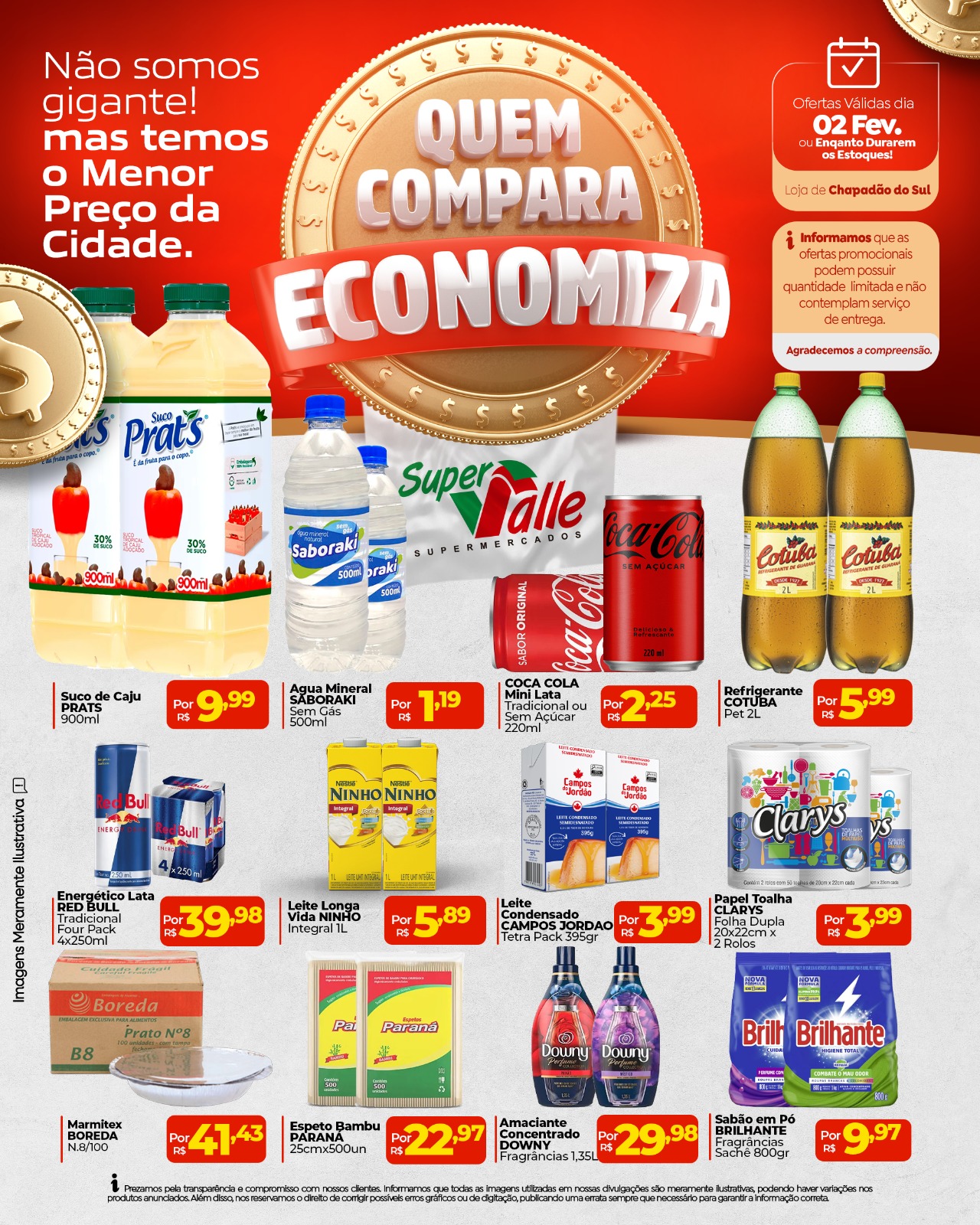 InícioInforme PublicitárioSegunda-feira de promoções no Super Valle Segunda-feira de promoções no Super Valle 2 de fevereiro de 2026 543 FacebookTwitterPinterestWhatsApp Adejair Aqui em Chapadão do Sul, quem pesquisa encontra os melhores preços pra economizar de verdade! 🛒💰 Compare, escolha e leve mais pagando menos! 🗓️ Ofertas válidas somente hoje, dia 02 de fevereiro! Artigo anteriorCosta Rica perdeu para o Pantanal em Campo GrandePróximo artigoJunta Militar alerta: deixar de se alistar pode gerar impedimentos legais Vereadores de Paraíso das Águas cumprem agenda em Brasília e reforçam pedidos por investimentos ao município 7 de fevereiro de 2026 Sindicato Rural de Chapadão do Sul divulga a grade de shows da 32ª Exposul 6 de fevereiro de 2026 Vídeo mostra sucuri enrolada em cachorra durante ataque no interior de SP 6 de fevereiro de 2026 Menina torturada em Rio Verde de MT foi “trocada” por R$ 50 6 de fevereiro de 2026 Vereadores de Paraíso das Águas cumprem agenda em Brasília e reforçam pedidos por investimentos ao município Sindicato Rural de Chapadão do Sul divulga a grade de shows da 32ª Exposul Vídeo mostra sucuri enrolada em cachorra durante ataque no interior de SP Menina torturada em Rio Verde de MT foi “trocada” por R$ 50 Amplavisão – Vale o pragmatismo ou a fidelidade partidária? Prefeitura inicia nova etapa de sinalização viária na Rua 35, na continuidade da Avenida Onze Homem em patinete elétrico fica ferido ao ser atingido por carro em Costa Rica Família encontra tatu-canastra ferido na BR-060, em Paraíso das Águas e aciona a PMA Sucuri é flagrada em fazenda na região de Paraíso das Águas Mulher é agredida com barra de ferro e caco de vidro ao tentar separar briga em Paraíso das Águas PM flagra motorista bêbado trafegando em zigue-zague em Costa Rica Polícia Militar age rápido e prende homem que furtou bolsa dentro de veículo em Costa Rica