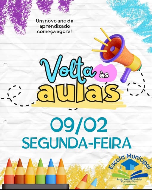 A Prefeitura Municipal de Figueirão, por meio da Secretaria Municipal de Educação e Esporte, comunica a toda a população o retorno das aulas da Escola Municipal Professor Antônio Inácio Furtado – Polo, que acontecerá no dia 09/02.
