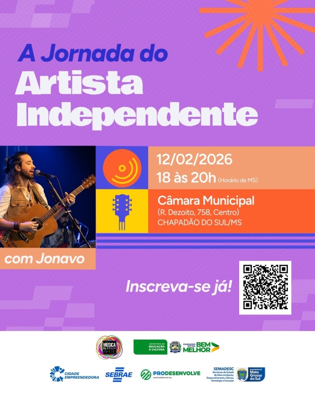 A palestra será ministrada por Jonavô, músico independente com trajetória consolidada no cenário artístico, que irá compartilhar experiências reais, desafios enfrentados ao longo da carreira e caminhos possíveis para quem deseja viver da arte de forma sustentável. O encontro tem como proposta dialogar diretamente com a realidade dos artistas independentes, abordando temas como profissionalização, posicionamento no mercado, organização da carreira, valorização do trabalho artístico e construção de oportunidades.