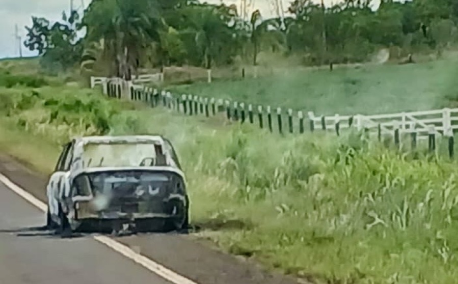 Um internauta encaminhou à redação uma foto de um veículo completamente incendiado às margens da rodovia BR-060, em Paraíso das Águas, no trecho de saída para Chapadão do Sul. A imagem chama a atenção pelo estado de destruição do automóvel, que ficou praticamente reduzido à estrutura metálica após o fogo.