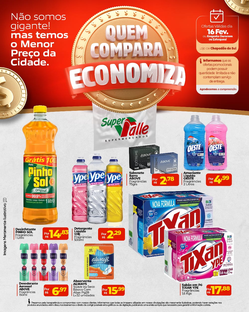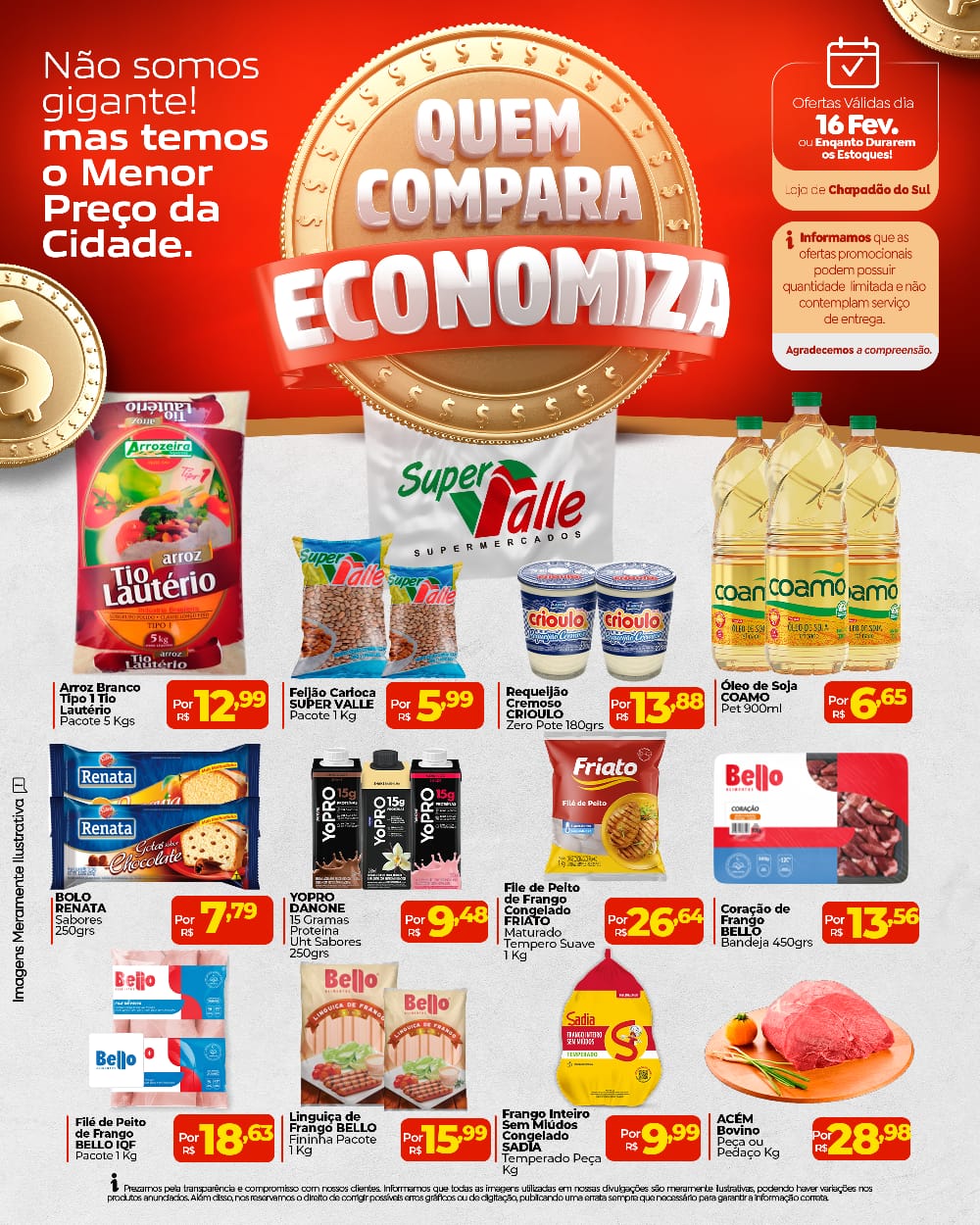 InícioInforme PublicitárioConfira o Tabloide de Ofertas do Super Valle Confira o Tabloide de Ofertas do Super Valle 16 de fevereiro de 2026 74 FacebookTwitterPinterestWhatsApp Adejair Aqui em Chapadão do Sul, quem pesquisa encontra os melhores preços pra economizar de verdade! 🛒💰 Compare, escolha e leve mais pagando menos! 🗓️ Ofertas válidas somente hoje, dia 16 de fevereiro Artigo anteriorInvasão de javaporcos gigantes vira ameaça no campo e já provoca ataques a rebanhos e prejuízos Invasão de javaporcos gigantes vira ameaça no campo e já provoca ataques a rebanhos e prejuízos 16 de fevereiro de 2026 Boi gordo já é negociado a R$ 350/@ e consolida novo patamar de preços no Brasil 16 de fevereiro de 2026 Com feriado do Dia do Presidente nos EUA, bolsas de Chicago e NY não operam nesta 2ª feira (16) 16 de fevereiro de 2026 Cassilândia: derramamento de 10 mil litros de diesel provoca autuação ambiental na BR-158 16 de fevereiro de 2026 Invasão de javaporcos gigantes vira ameaça no campo e já provoca ataques a rebanhos e prejuízos Boi gordo já é negociado a R$ 350/@ e consolida novo patamar de preços no Brasil Com feriado do Dia do Presidente nos EUA, bolsas de Chicago e NY não operam nesta 2ª feira (16) Cassilândia: derramamento de 10 mil litros de diesel provoca autuação ambiental na BR-158 Horóscopo do Dia – Segunda-feira Estiagem severa atinge mais de 640 mil hectares de soja em MS Costa Rica chega ao quarto empate consecutivo no estadual Com R$ 30 milhões, indústria de amendoim vai se instalar em Nova Alvorada do Sul Duas pessoas ficaram feridas em capotamento na BR 060 Com investimento de R$ 2 milhões prefeito Juvenal confirma a construção de Asilo e Figueirão Horóscopo do Dia – Domingo MS firma parceria para ampliar produção de eucalipto no estado.