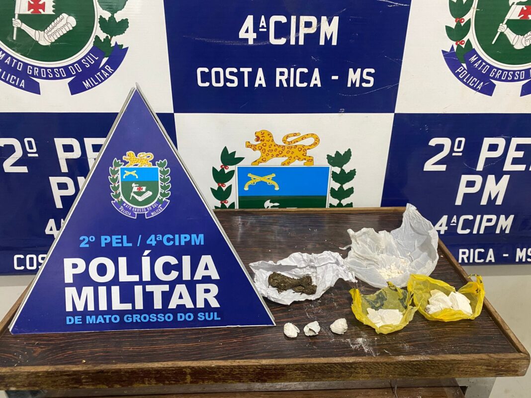 Na noite desta quinta-feira (19), após denúncias, policiais prenderam um jovem de 28 anos em flagrante por tráfico de drogas, na cidade de Costa Rica.