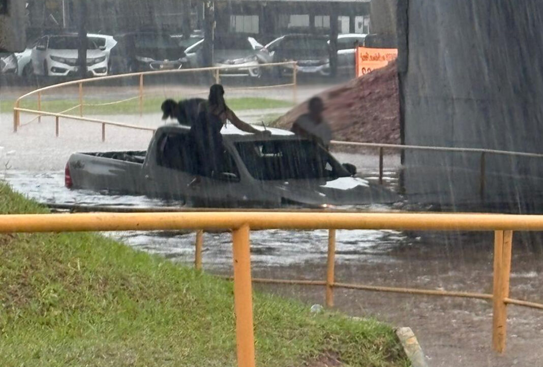 Nossa reportagem recebeu vários vídeos de internautas. O que mais chama atenção é o do viaduto que liga as avenidas Onze com a Mato Grosso do Sul, onde uma caminhonete teria tentado atravessar o viaduto mesmo com grande acúmulo de água e acabou sofrendo uma pane elétrica. As imagens abaixo mostram que o Corpo de Bombeiros chegou a ser acionado para resgatar os ocupantes do veículo.