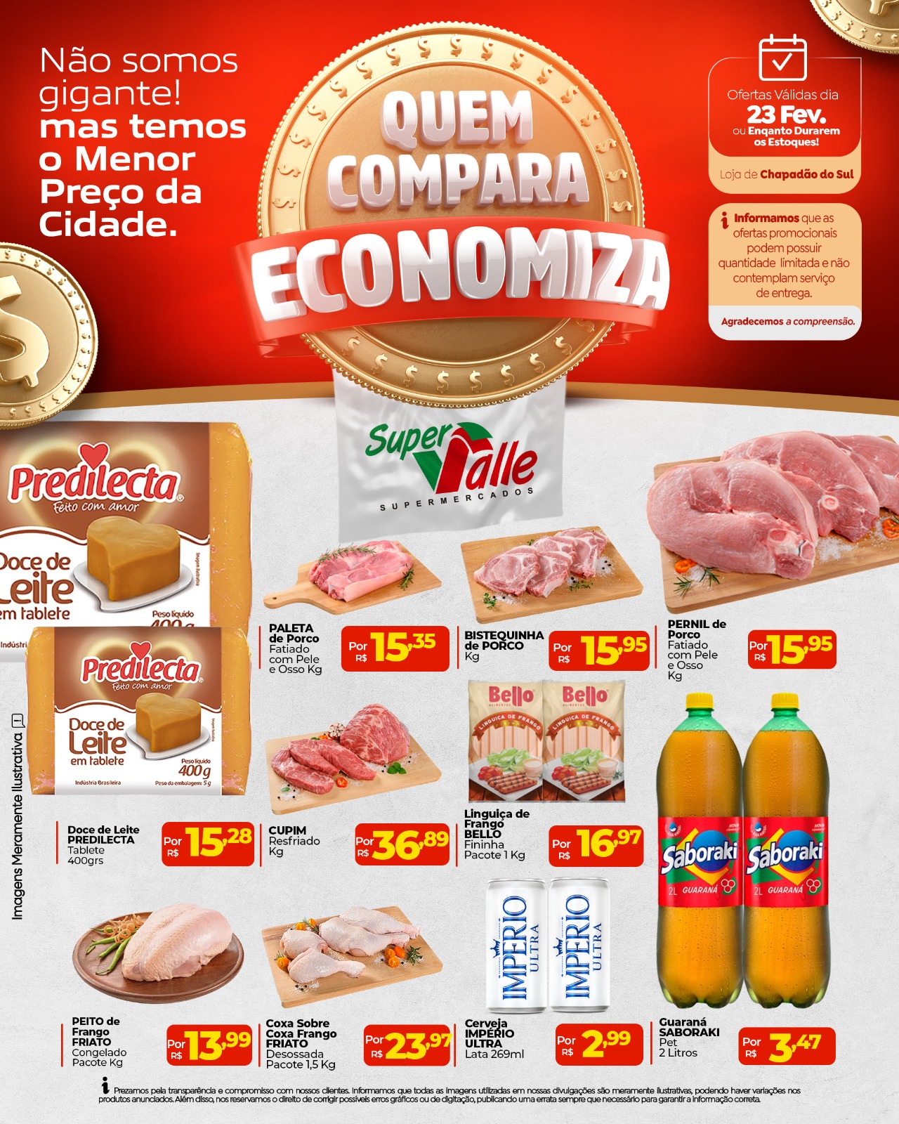 InícioChapadão do SulOfertas válidas somente hoje, dia 23 de fevereiro no... Ofertas válidas somente hoje, dia 23 de fevereiro no Super Valle 23 de fevereiro de 2026 45 FacebookTwitterPinterestWhatsApp Adejair Aqui em Chapadão do Sul, quem pesquisa encontra os melhores preços pra economizar de verdade! 🛒💰 Compare, escolha e leve mais pagando menos! 🗓️ Ofertas válidas somente hoje, dia 23 de fevereiro! Artigo anteriorSecretaria de Educação cede veículo escolar para Chapadão do Sul e mais 5 cidades de MSPróximo artigoEm visita a zona rural prefeito Rodrigo destaca novos investimentos e fortalecimento do agro 8º Torneio da Amizade agitou Alcinopolis 23 de fevereiro de 2026 Polícia aperta o cerco e prende mais três traficantes de drogas em Chapadão do Sul 23 de fevereiro de 2026 Anvisa proíbe novo emagrecedor do Paraguai no Brasil; confira 23 de fevereiro de 2026 Pai e filho são presos suspeitos por matar mulher a facadas dentro de casa em MS 23 de fevereiro de 2026 8º Torneio da Amizade agitou Alcinopolis Polícia aperta o cerco e prende mais três traficantes de drogas em Chapadão do Sul Anvisa proíbe novo emagrecedor do Paraguai no Brasil; confira Pai e filho são presos suspeitos por matar mulher a facadas dentro de casa em MS Polícia Militar prende homem com drogas dentro de mochila em Costa Rica Em visita a zona rural prefeito Rodrigo destaca novos investimentos e fortalecimento do agro Secretaria de Educação cede veículo escolar para Chapadão do Sul e mais 5 cidades de MS Costa Rica e Águia Negra podem cair para segunda divisão Carreta fica pendurada após ponte ceder com a força da chuva em MS Motociclista fica ferido ao colidir com veículo que invadiu preferencial em Chapadão do Sul Equipe de Paraíso das Águas participa de reunião técnica regional sobre reforma tributária em Costa Rica Suspeito de furtar motocicleta em Chapadão do Sul é preso em Cassilândia após apontar arma para policiais