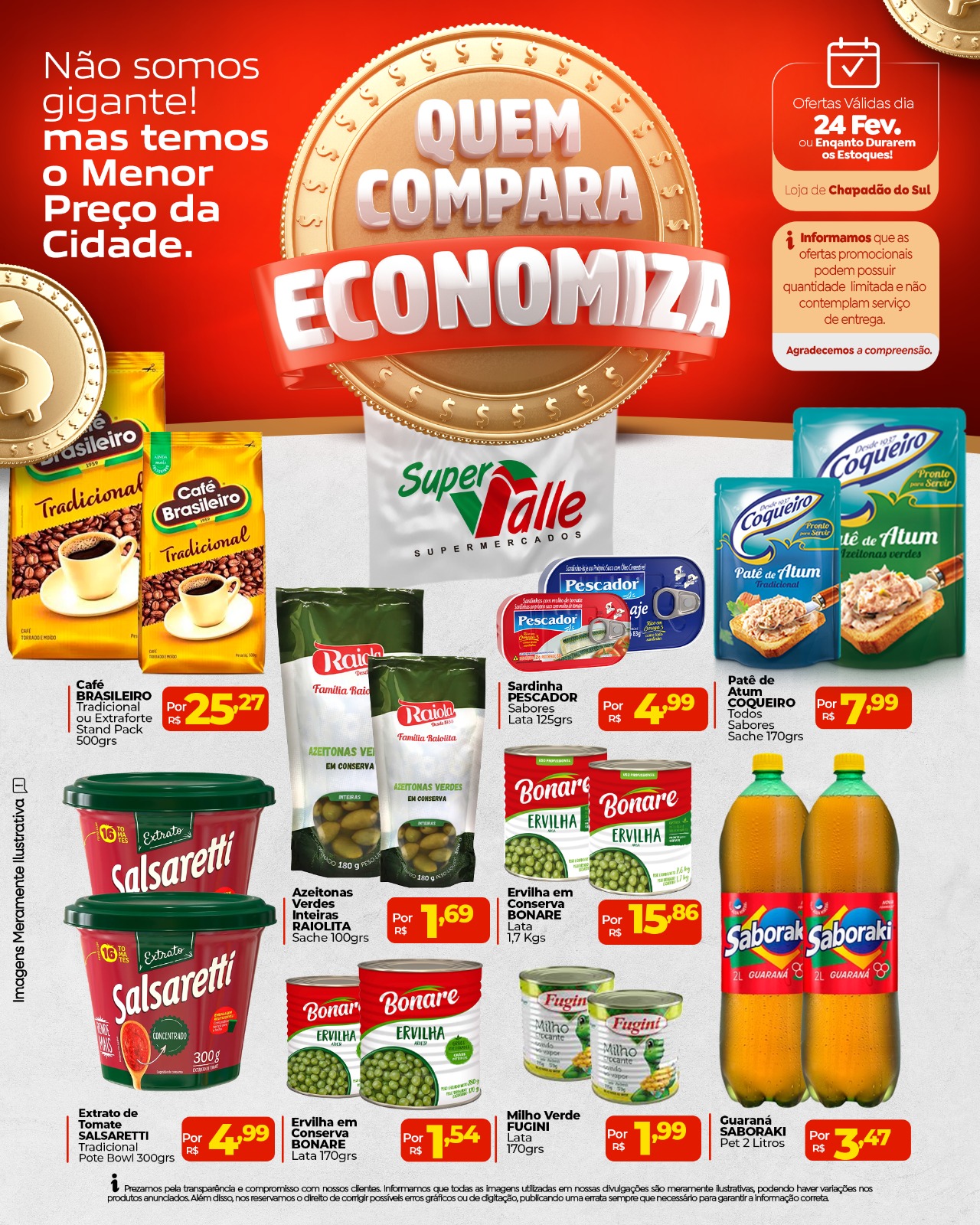 InícioChapadão do SulTabloide de ofertas do super Valle deste dia 24 Tabloide de ofertas do super Valle deste dia 24 24 de fevereiro de 2026 102 FacebookTwitterPinterestWhatsApp Adejair QUEM COMPARA, ECONOMIZA! Aqui em Chapadão do Sul, quem pesquisa encontra os melhores preços pra economizar de verdade! 🛒💰 Compare, escolha e leve mais pagando menos! 🗓️ Ofertas válidas somente hoje, dia 24 de fevereiro! Artigo anteriorCarreta perde controle durante ultrapassagem na Serra Sucuriú em Paraíso das Águas. BR-060 chegou a ficar interditadaPróximo artigoPrefeito de Chapadão do Céu passou por um procedimento cirúrgico Interdição de ponte na MS-080 altera rotas entre São Gabriel, Rio Negro e Pantanal 24 de fevereiro de 2026 CMDCA de Figueirão-MS realizou a Solenidade de Diplomação das Conselheiras Tutelares Suplentes eleita 24 de fevereiro de 2026 Prefeito de Chapadão do Céu passou por um procedimento cirúrgico 24 de fevereiro de 2026 Carreta perde controle durante ultrapassagem na Serra Sucuriú em Paraíso das Águas. BR-060 chegou a ficar interditada 24 de fevereiro de 2026 Interdição de ponte na MS-080 altera rotas entre São Gabriel, Rio Negro e Pantanal CMDCA de Figueirão-MS realizou a Solenidade de Diplomação das Conselheiras Tutelares Suplentes eleita Prefeito de Chapadão do Céu passou por um procedimento cirúrgico Carreta perde controle durante ultrapassagem na Serra Sucuriú em Paraíso das Águas. BR-060 chegou a ficar interditada Aposta feita em Chapadão do Sul fatura R$ 888,7 mil no concurso 3.619 da Lotofácil Brasil firma acordos com Coreia do Sul para cooperação bilateral no agro Vereadores apresentam indicações voltadas à melhoria da Veladoria Municipal Soja avança com pressão logística no Centro-Oeste Milho recua na B3 com pressão do dólar Horóscopo do Dia Vereador Popó solicita recuperação urgente de estrada rural na região da Baús Dupla que ostentava drogas e arma de fogo na internet é presa em flagrante em Chapadão do Céu