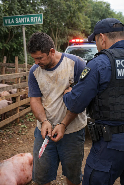 A vítima, de 50 anos, informou que dois indivíduos invadiram sua chácara e estavam furtando animais de seu chiqueiro. Ao chegar ao local, o proprietário constatou que um porco já havia sido abatido pelos criminosos.
