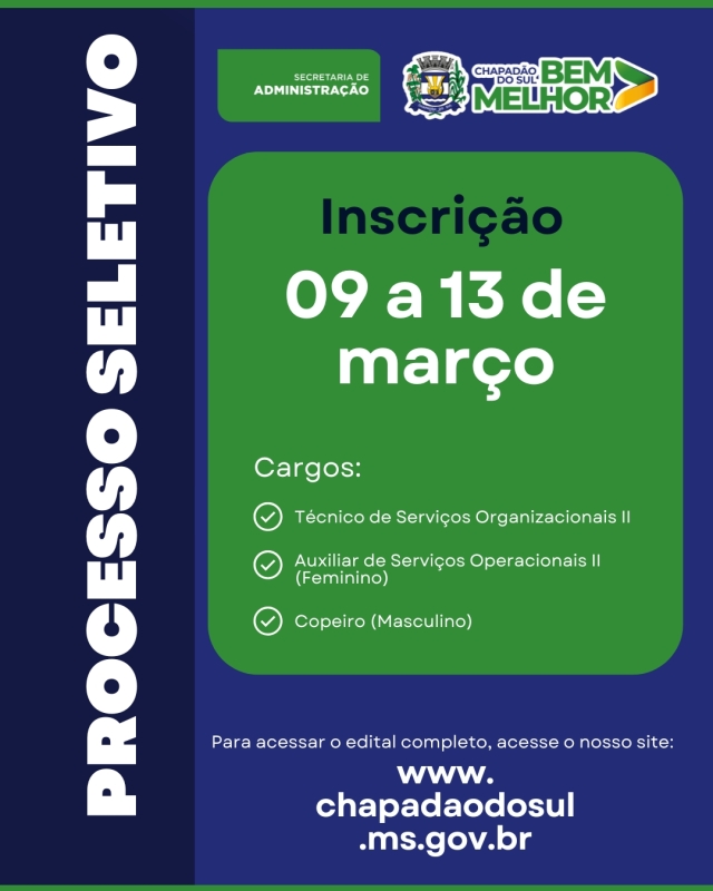 InícioChapadão do SulPrefeitura abre novo processo administrativo para cargos da Secretaria...