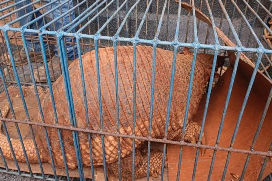 PMA resgata tatu canastra gigante que ameaçava estrutura de residência em Cassilândia