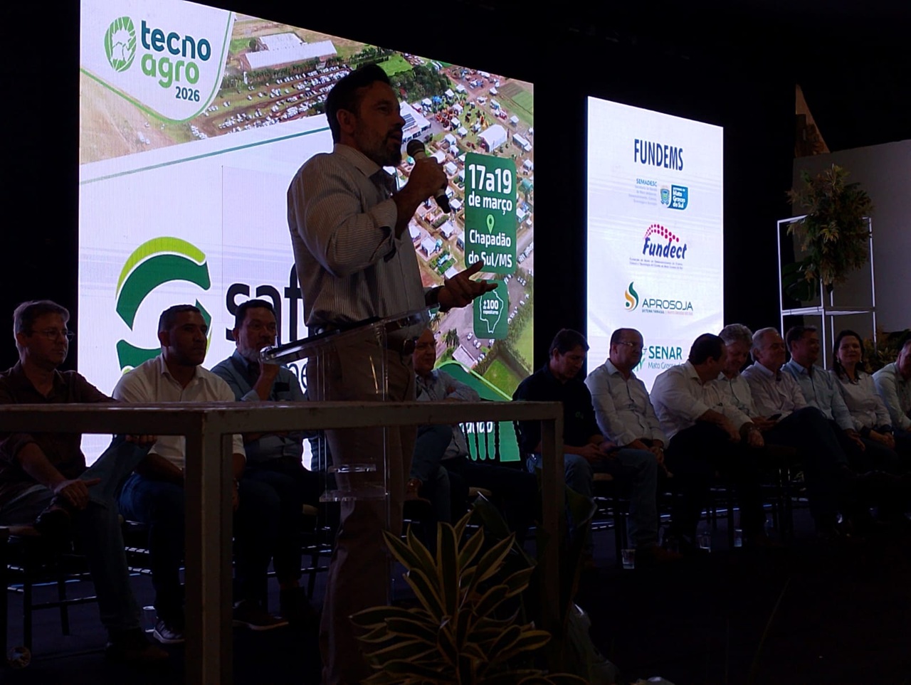 Com a presença do vice-governador Barbosinha, do vice-prefeito Dr. Ernany, do deputado federal Rodolfo Nogueira e dos deputados estaduais Júnior Mochi e João Henrique Catan, foi oficialmente aberta a edição 2026 da TecnoAgro, evento promovido pela Fundação Chapadão.