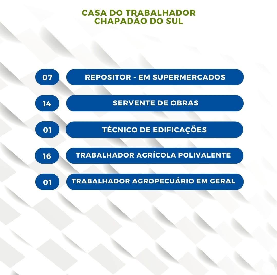 Se você está em busca de um novo emprego, empenhado em mudar de carreira ou simplesmente quer se aventurar em novos horizontes profissionais, a Casa do Trabalhador de Chapadão do Sul está oferecendo 178 vagas de emprego. (Confira as vagas nas imagens abaixo):