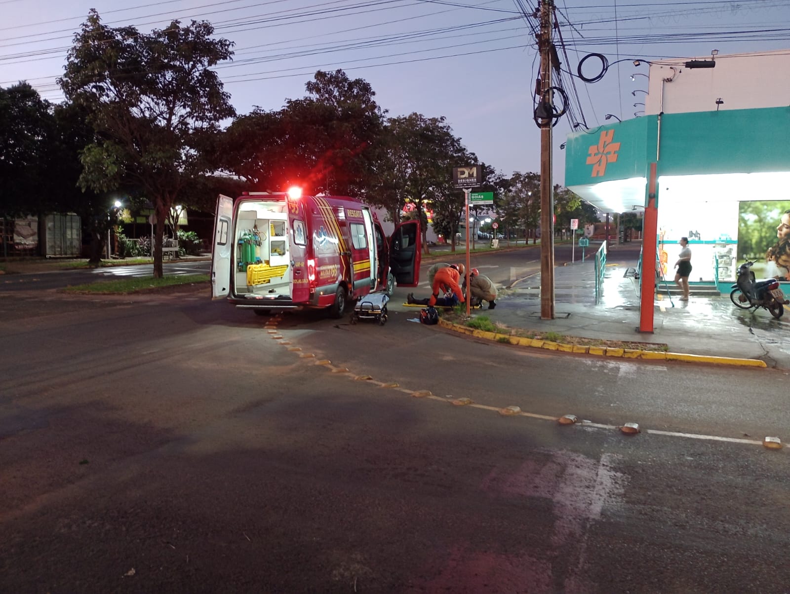 O atendimento ocorreu por volta das 05h12, em um cruzamento entre a Avenida MS e a Avenida Goiás, na rotatória da via. Segundo informações , a vítima perdeu o controle da motocicleta e acabou caindo no local.