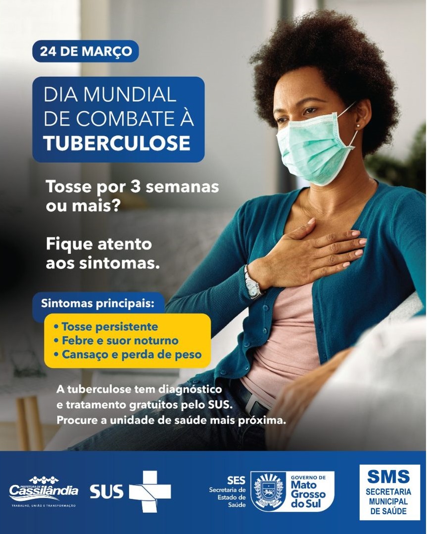 A campanha reforça a importância de ficar atento aos sinais da doença, principalmente quando há tosse persistente por três semanas ou mais. Entre os principais sintomas estão tosse contínua, febre, suor noturno, cansaço excessivo e perda de peso. A identificação precoce é fundamental para evitar complicações e interromper a cadeia de transmissão.